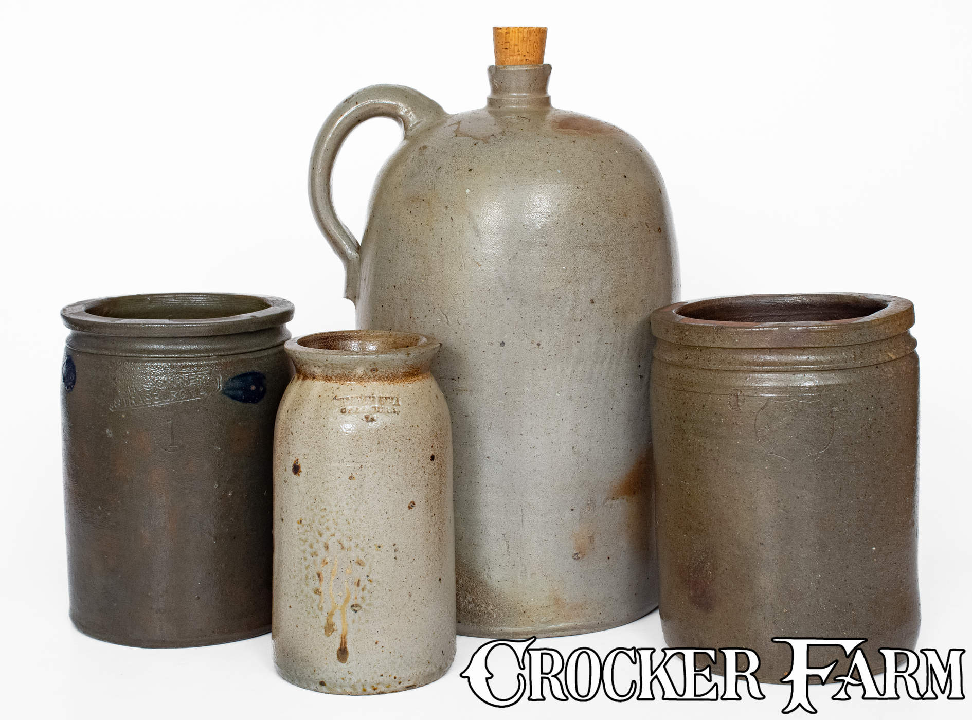 Lot of Four: Marked Stoneware Vessels, Mid-Atlantic origin