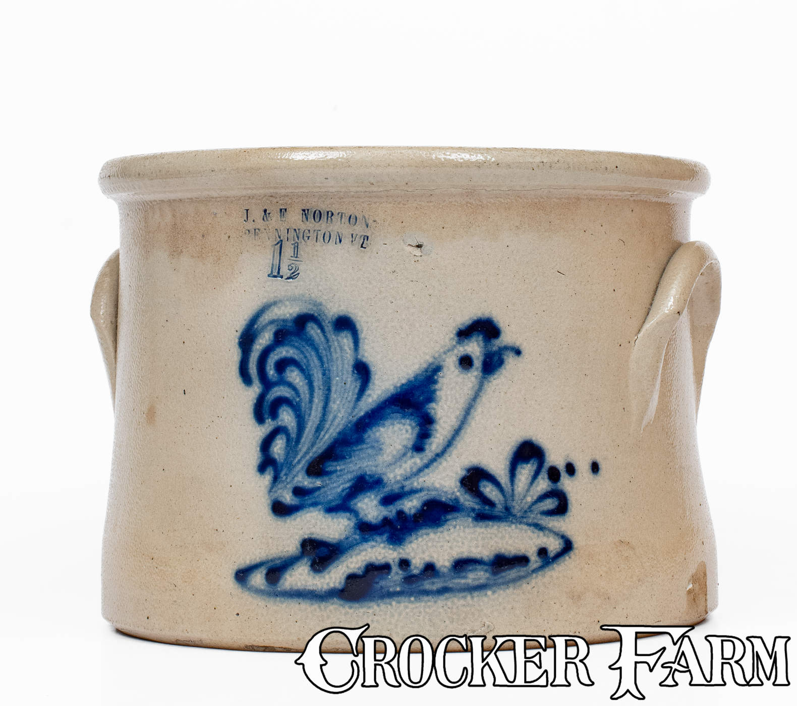 J. & E. NORTON / BENNINGTON, VT Stoneware Crock w/ Rooster Decoration