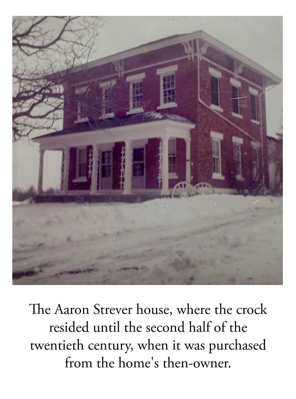 Important and Unique Five-Gallon Stoneware Crock with Elaborate Cobalt Cat and Yarn Decoration, Stamped "W.H. FARRAR & CO. / GEDDES.N.Y.," Inscribed "Geddesburg," circa 1850, cylindrical crock with tooled shoulder, semi-squared rim, and applied lug handles, decorated with an exceptionally large brushed and slip-trailed design of a cat playing with a ball of yarn. Imaginatively executed with a wonderful folk art aesthetic, the design features bold swathes of brushed cobalt forming the figure's body, forehead and ball, slip-trailing to the face, arms, tail and surrounding the figure, as well as upswept slip-trailed swags throughout the body. Sgraffito-style incised details to the fur appear throughout the head and neck, additional incising delineates the cat's front legs and toes, and a charming incised spiral fills the center of the ball of yarn. Heavy cobalt brushwork below forms a stylized ground incised with the name, "Geddesburg," a reference to the town of Geddes, where the crock was made. Cobalt highlights to maker's mark. Underside inscribed prior to firing with the rare reddish-slip inscription, "19 1/4 (?)," possibly referring to a measurement of the crock prior to firing, and "A. Strever," referring to the person for whom the crock was made. Aaron Strever, the crock's original owner, was a farmer born in 1818 in Ancram, New York, who married Emily Soule about 1848 in Chatham, New York, and died in 1898 in the town of Clay, New York, located in Onondaga County, about twelve miles north of Geddes. The inscription on the underside and extreme rarity of the design suggests the piece was specially ordered by Strever or made as a gift for him in honor of the family cat. Remarkably, this crock was discovered in the Strever home roughly 70 years after it was made when the property was sold to Stella West in the 1920s. West eventually sold the crock and it was then offered at Denlinger Auctions in Bennington, VT in 1987, after which it has remained unknown to the greater collecting community. An iconic masterwork, well-remembered among stalwart stoneware enthusiasts, this crock bears what is regarded as the finest known depiction of a house cat in 19th century American stoneware. The design's intense visual appeal, created through its multiple decorative techniques, bold color, and imposing size (spanning thirteen inches around the curve of the vessel and ten inches tall), place it among the best representations of an animal in the entire Northeastern stoneware tradition. In a broader sense, it can be regarded among the great examples of a cat in 19th century folk portraiture. Provenance: Made at the William H. Farrar pottery for Aaron Strever; Later acquired by Stella West in the 1920s, after purchasing the Strever property; Purchased from Stella West; Denlinger Auctions, Bennington, VT, 1987. A sealed diagonal crack extending from rim to shoulder on front. In-the-firing iron pings to surface. Two small surface flakes to shoulder on front. A long, sealed curving crack from rim on reverse extending onto proper right side of crock's front. Some light fry to cobalt. A few base chips. A few very minor flakes to base. H 14".