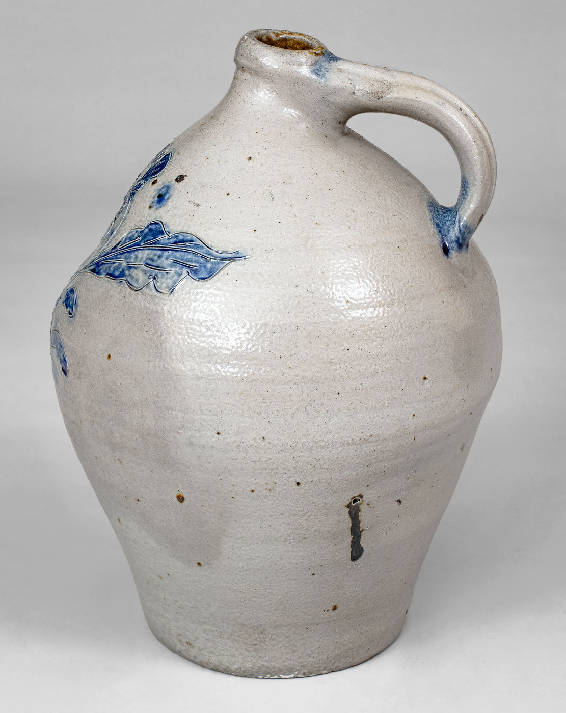 ×Fine Ovoid Stoneware Jug w/ Elaborate Incised Floral Decoration attrib. George Lent, Troy, NY, c1820