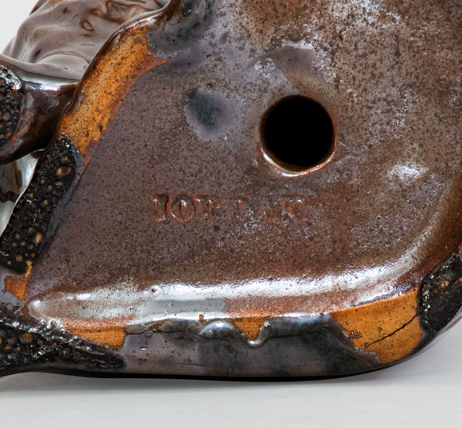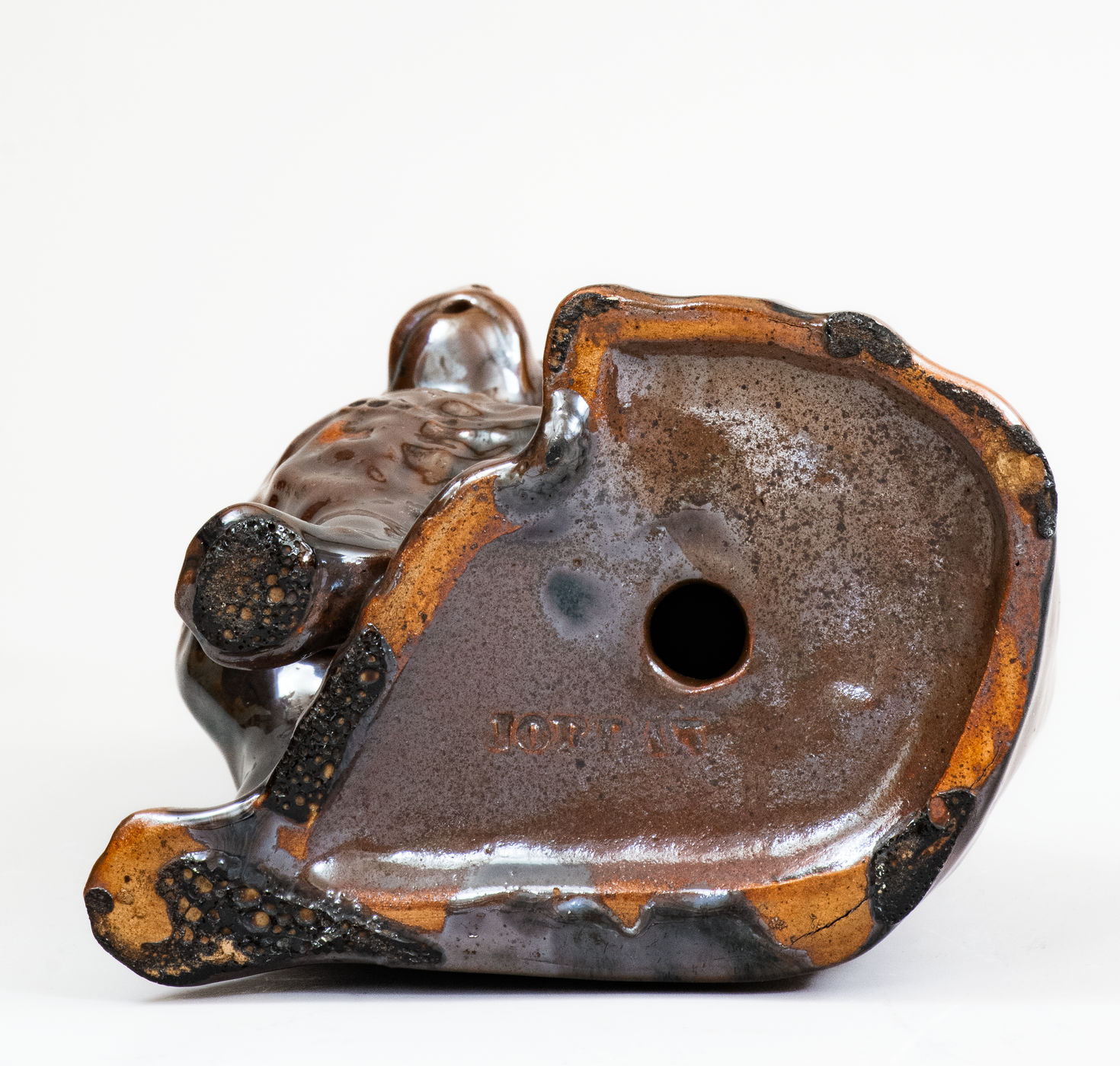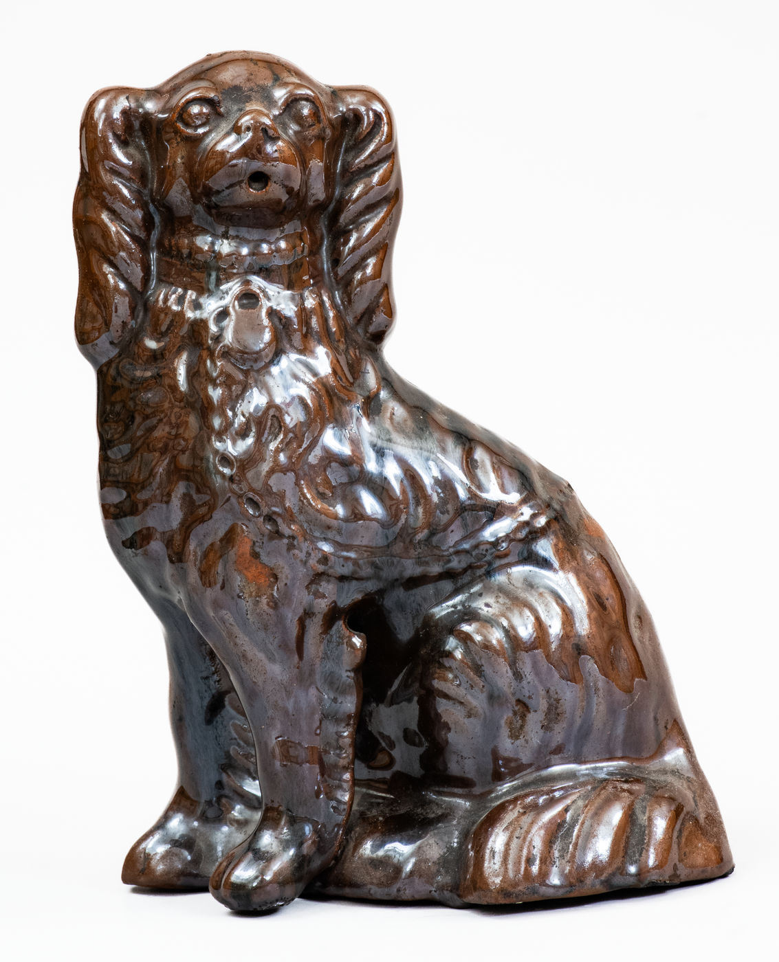×Scarce JORDAN, New York Albany-Slip-Glazed Stoneware Spaniel, mid 19th century