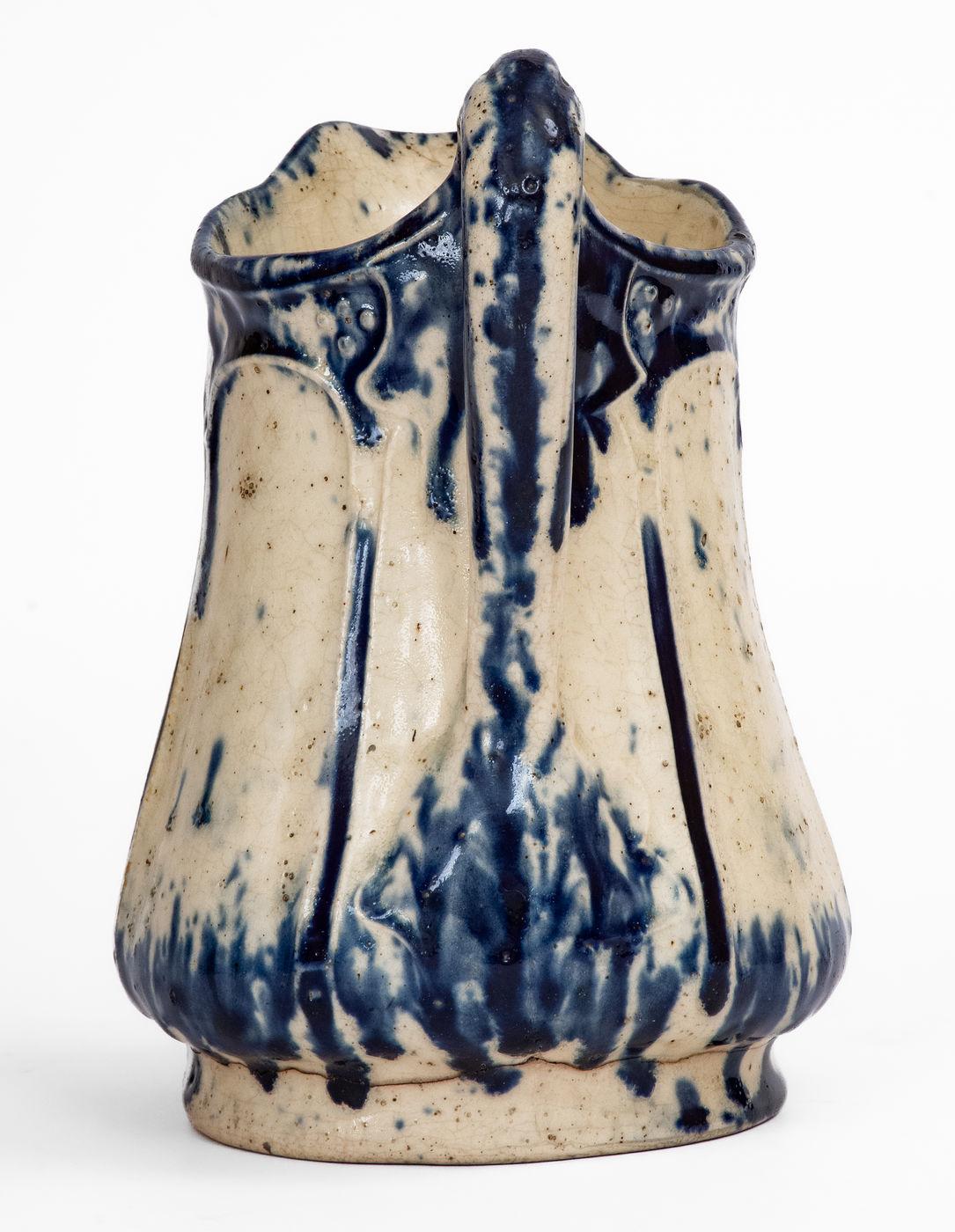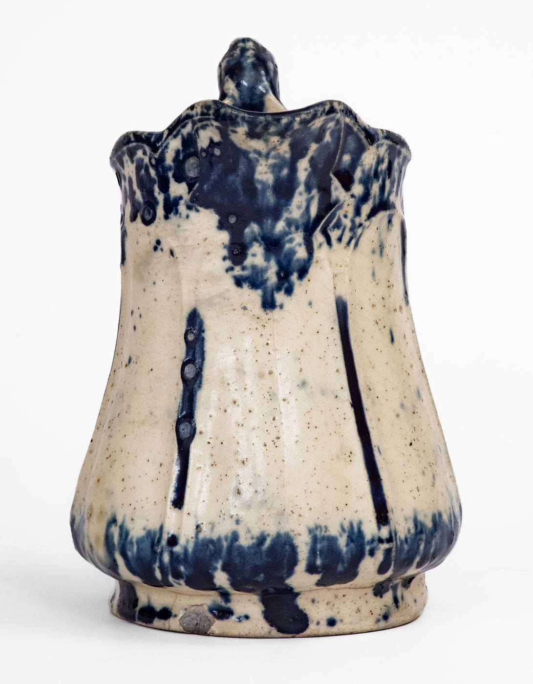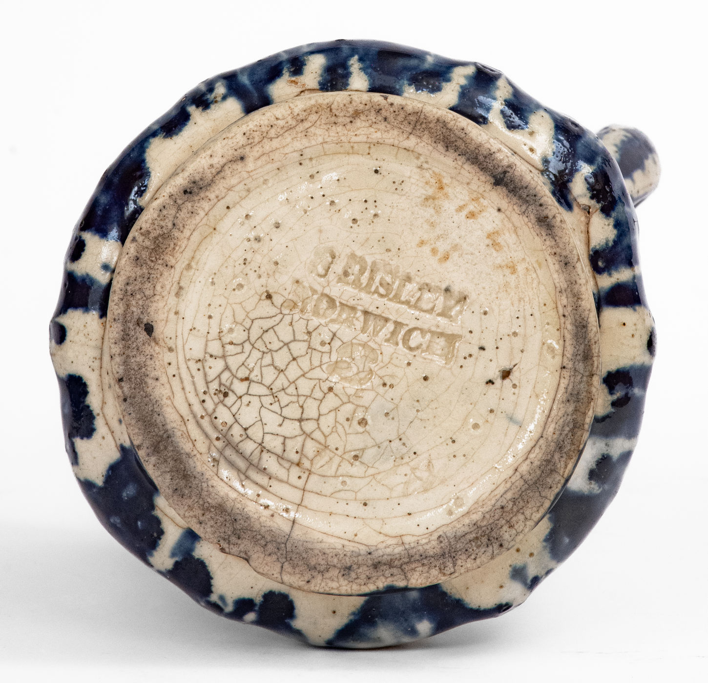 ×Extremely Rare S. RISLEY / NORWICH, CT Blue and White Molded Stoneware Pitcher