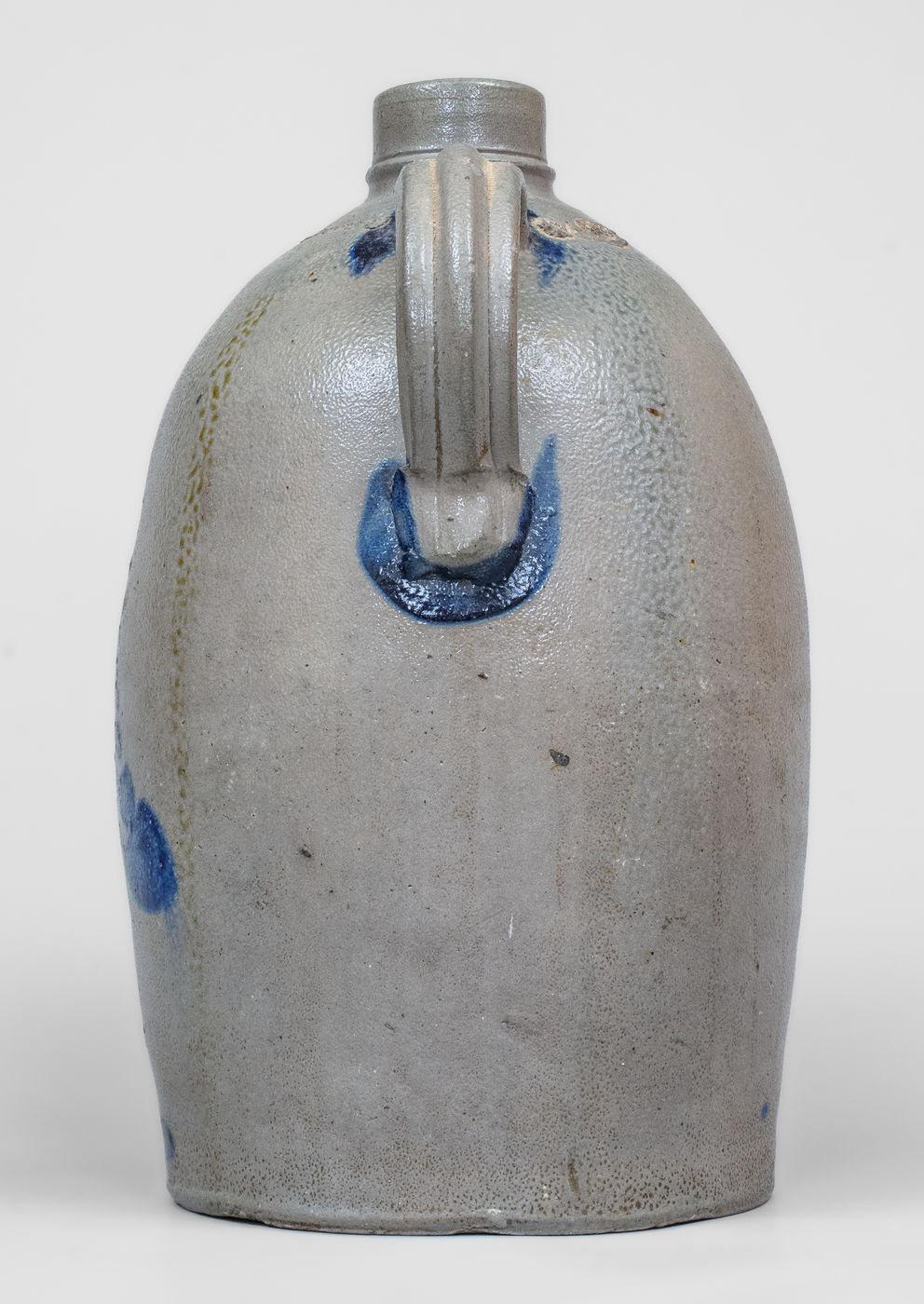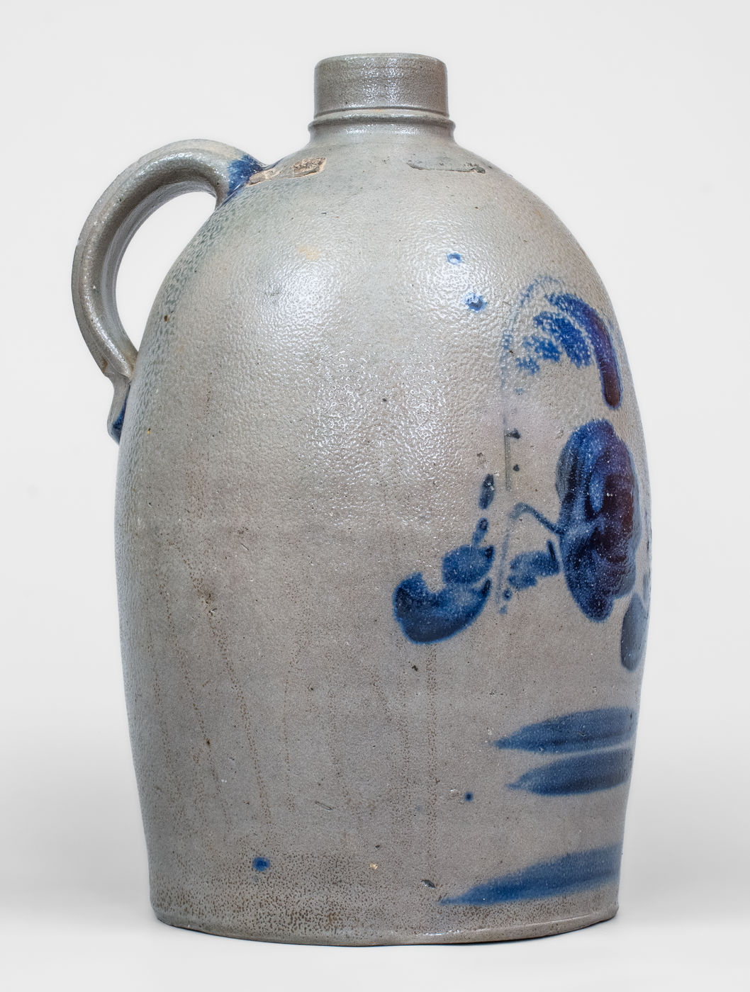×Western PA Stoneware Jug w/ Elaborate Freehand Cobalt Decoration, c1870