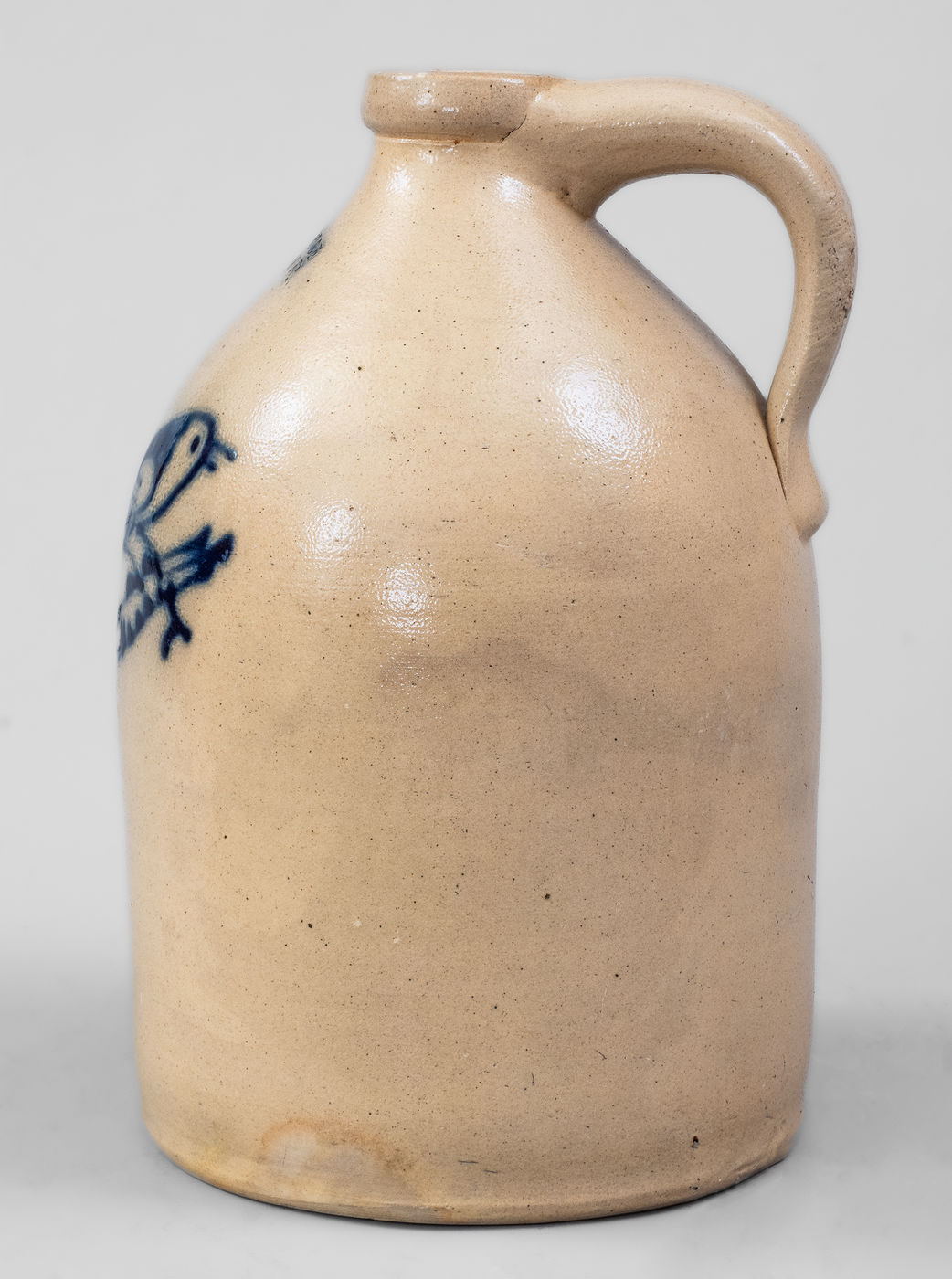 ×J. & E. NORTON / BENNINGTON VT Stoneware Bird Jug, circa 1855.
