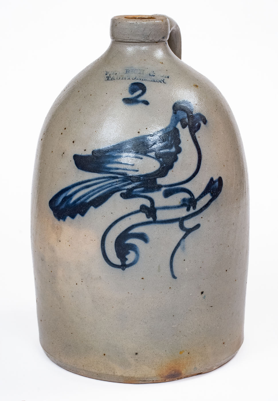 ×2 Gal. F. T. WRIGHT & SON / TAUNTON, MASS. Stoneware Jug w/ Bird Decoration