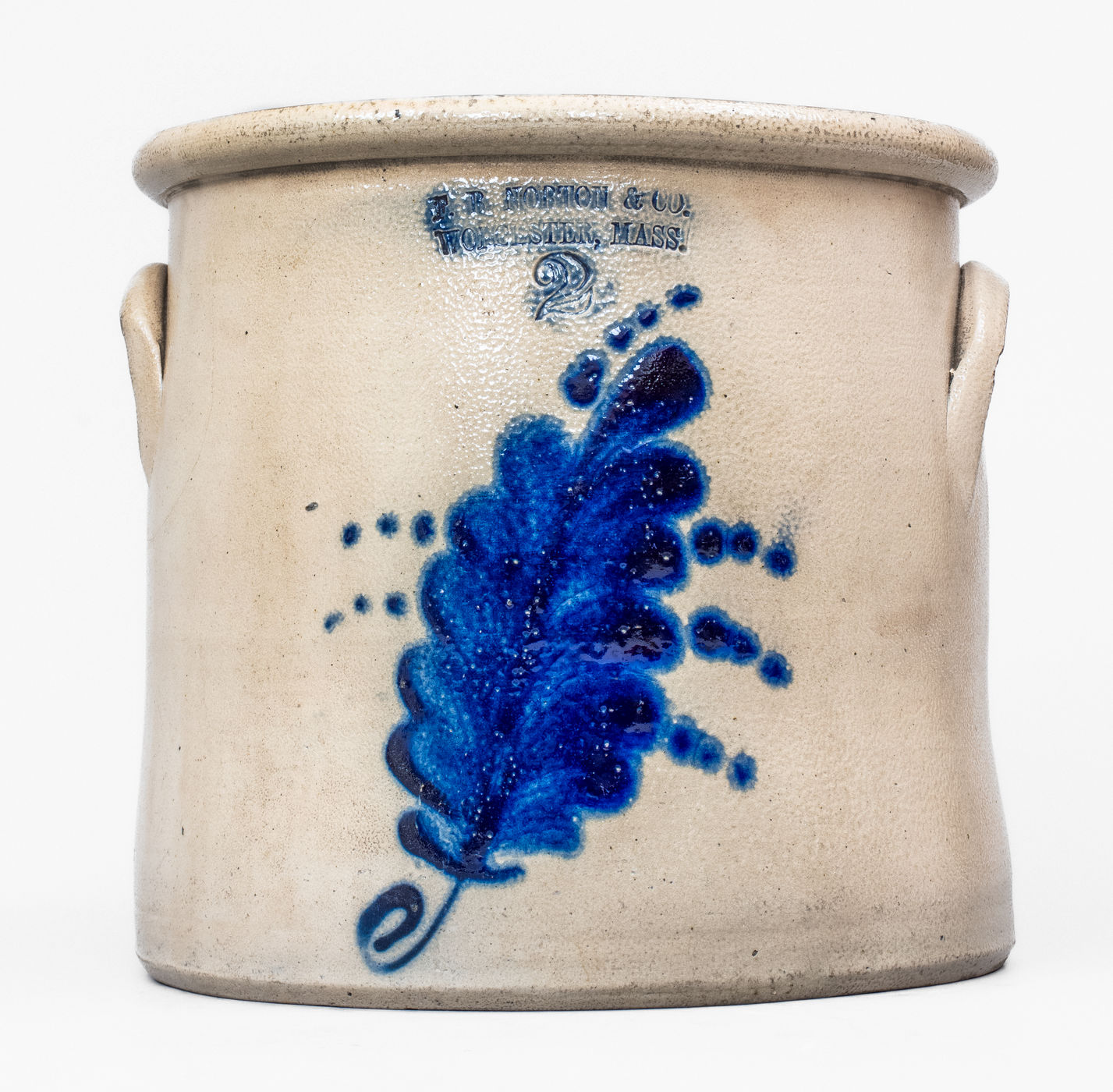 ×2 Gal. F. B. NORTON & CO. / WORCESTER, MASS. Stoneware Crock w/ Foliate Decoration