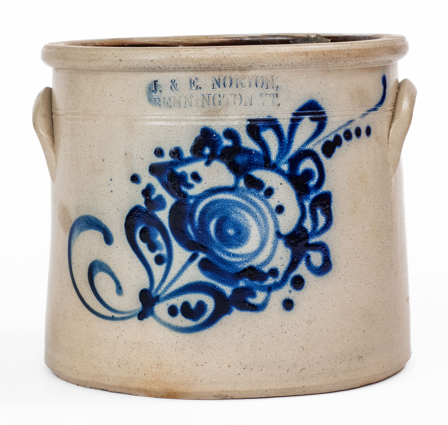 ×J. & E. NORTON / BENNINGTON, VT Stoneware Crock w/ Floral Decoration