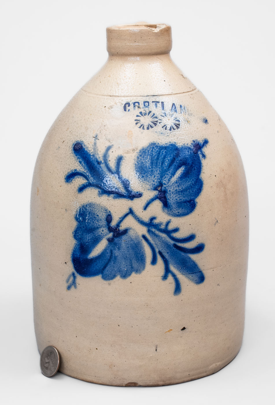 ×1 Gal. CORTLAND, New York Stoneware Jug w/ Floral Decoration