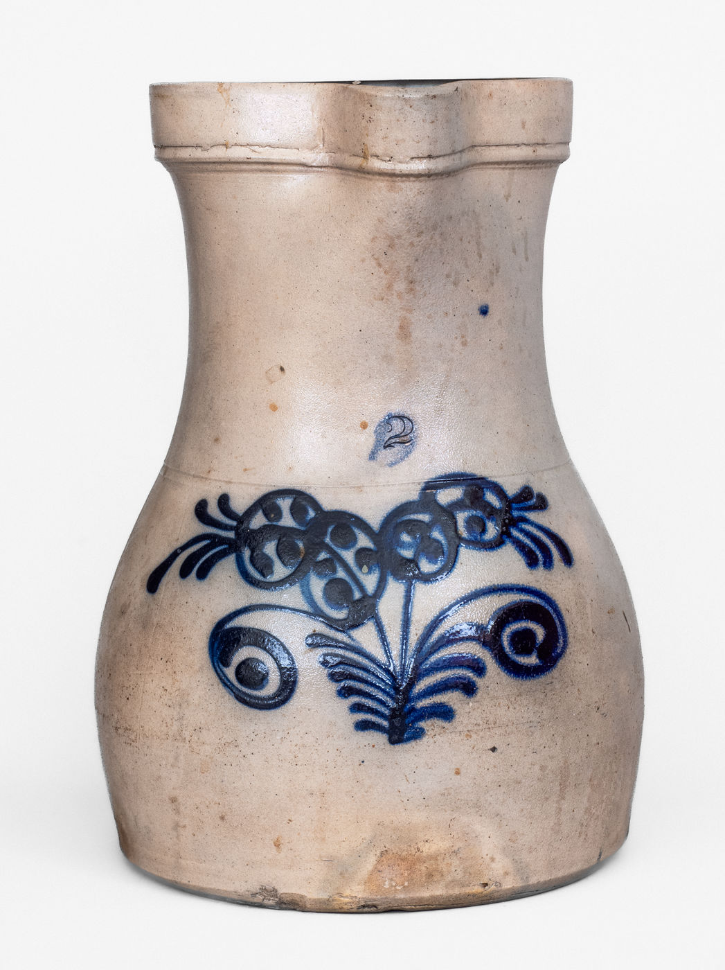 ×2 Gal. Northeastern Stoneware Pitcher w/ Slip-Trailed Floral Decoration