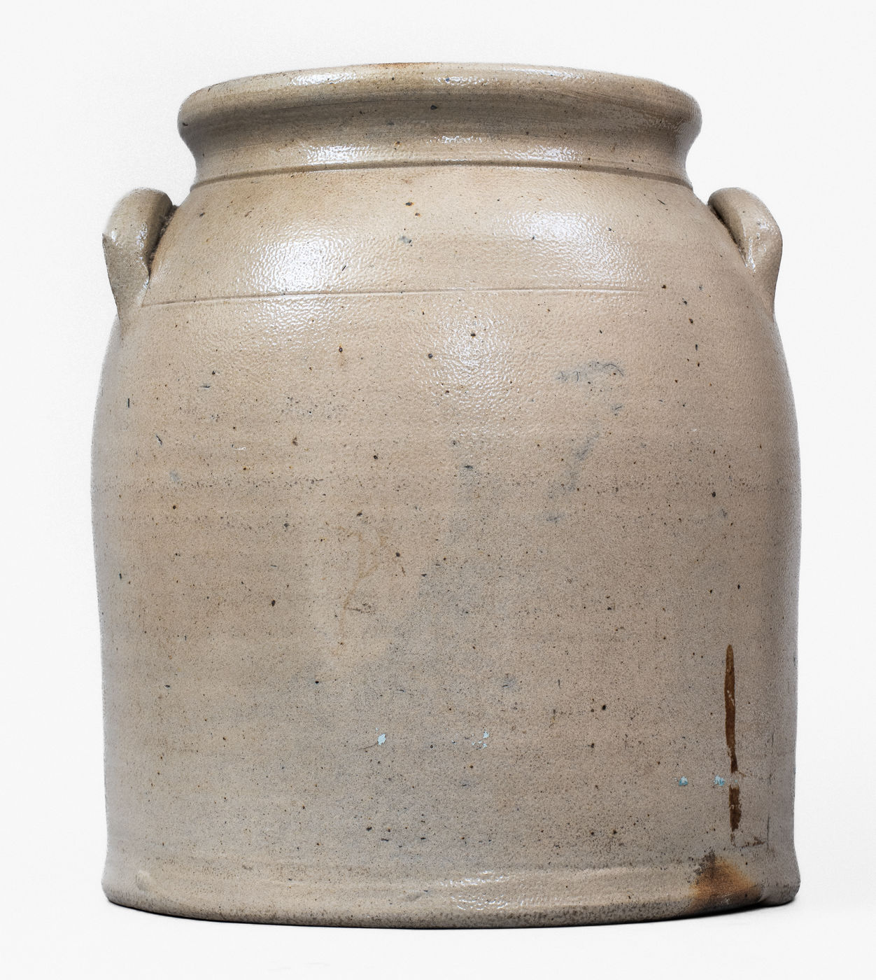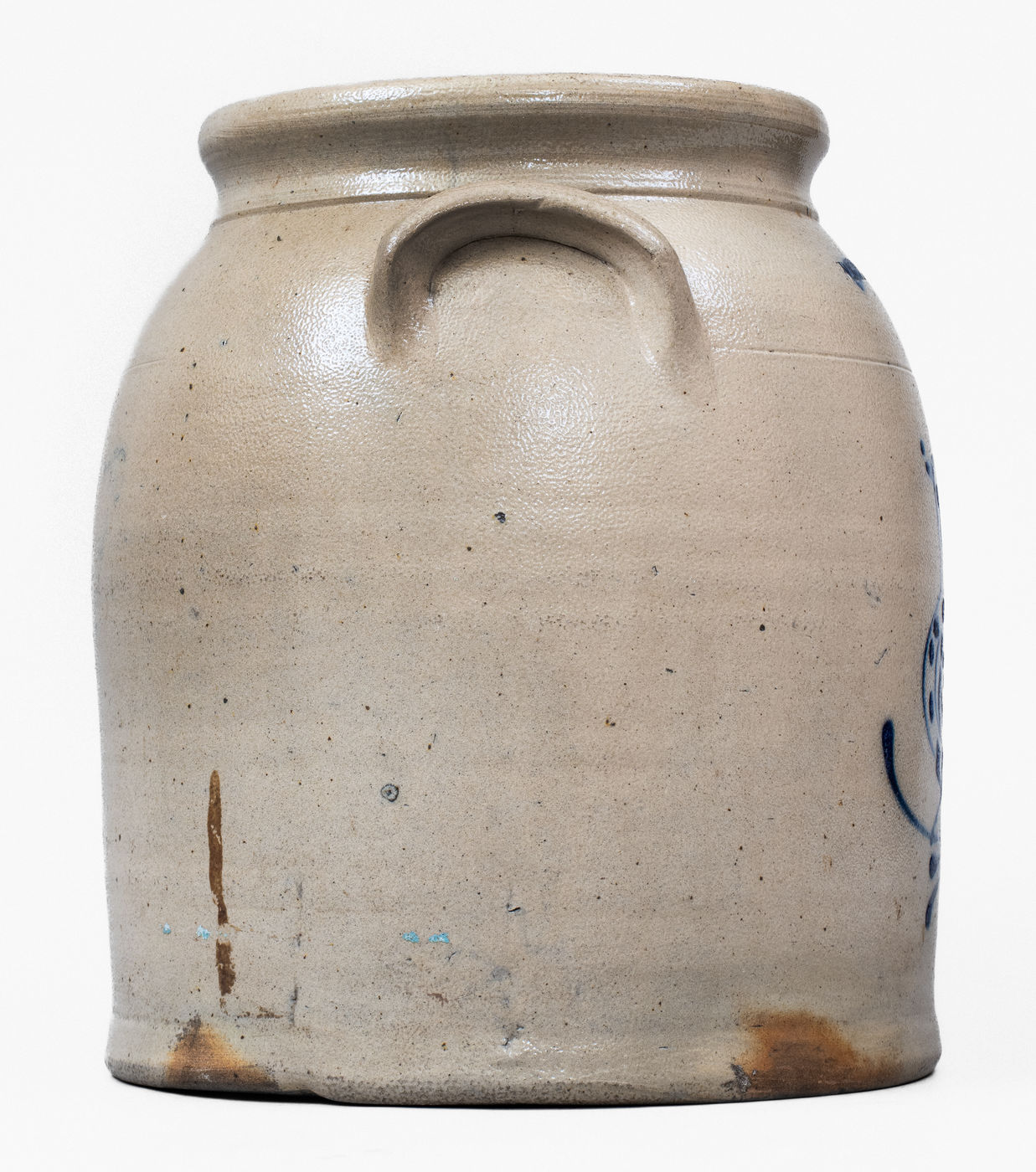 ×2 Gal. W, ROBERTS / BINGHAMTON, N.Y. Stoneware Crock w/ Slip-Trailed Bird Decoration