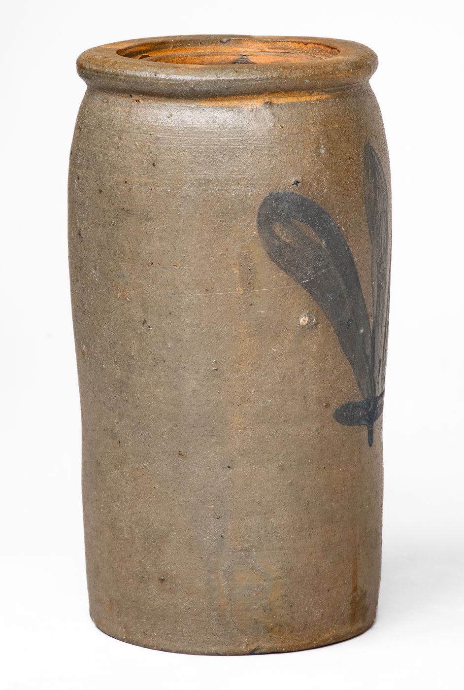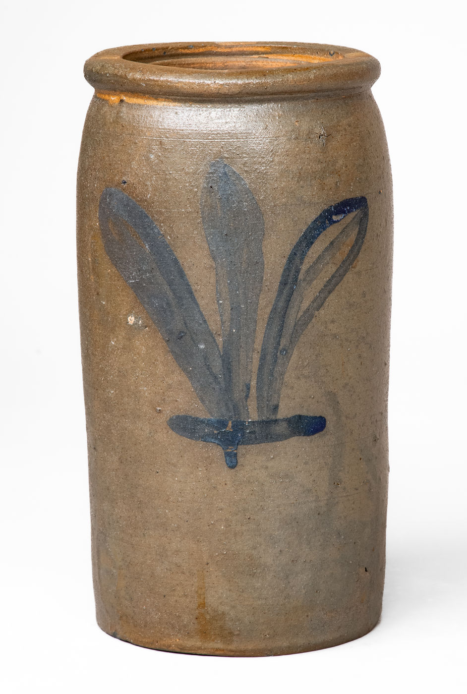 ×Unusual WV or Western PA Stoneware Canning Jar w/ Cobalt Foliate Decoration
