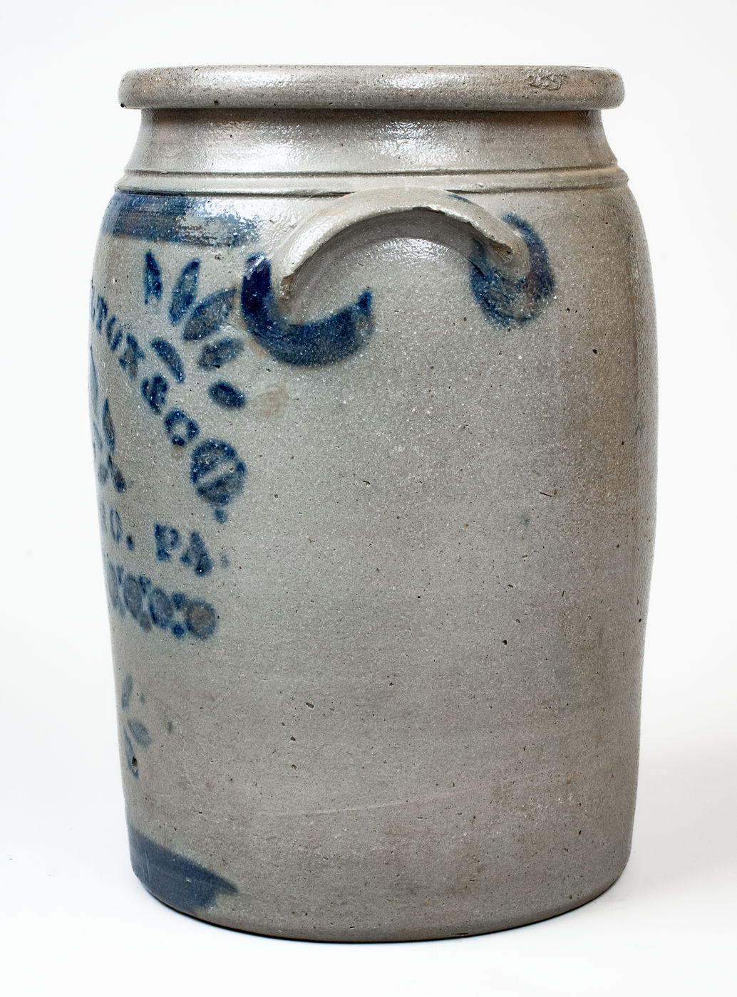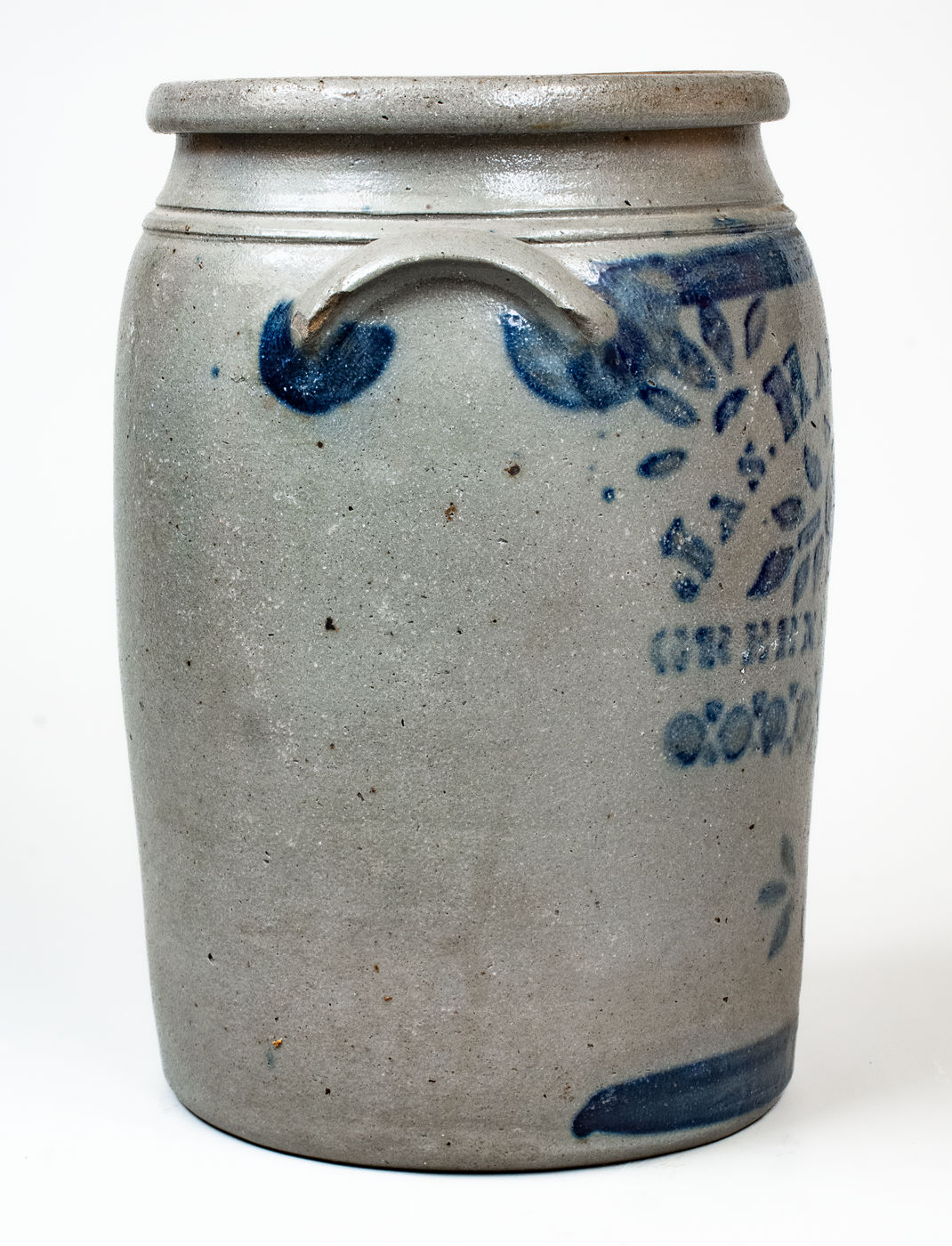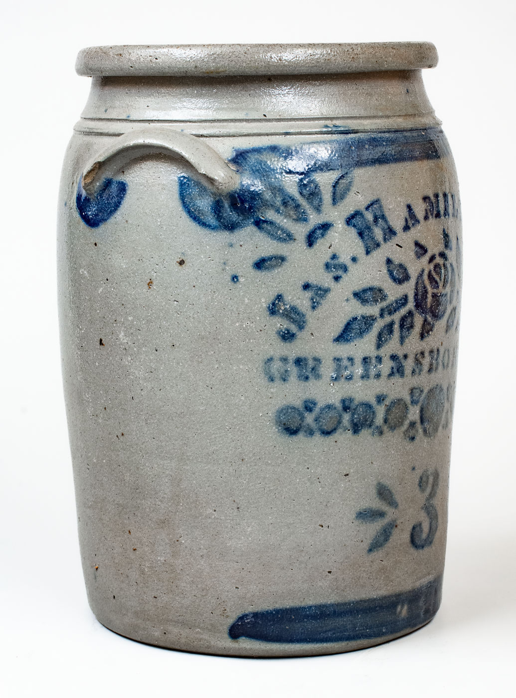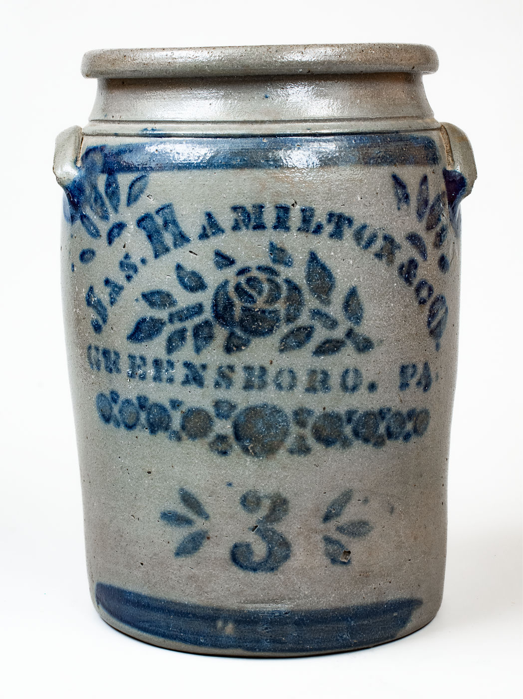 ×3 Gal. JAS. HAMILTON & CO. / GREENSBORO, PA Stoneware Jar w/ Stenciled Rose Decoration