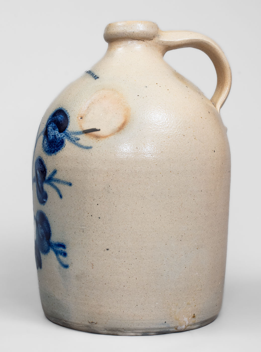 ×N. CLARK JR. / ATHENS, NY Stoneware Jug w/ Floral Decoration