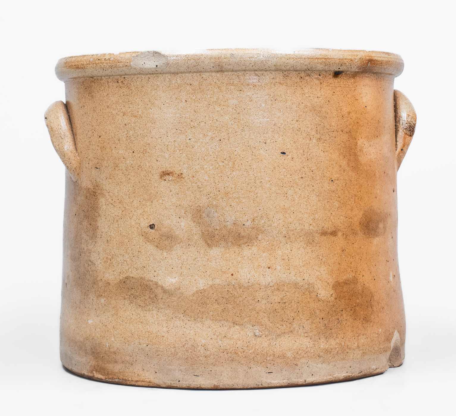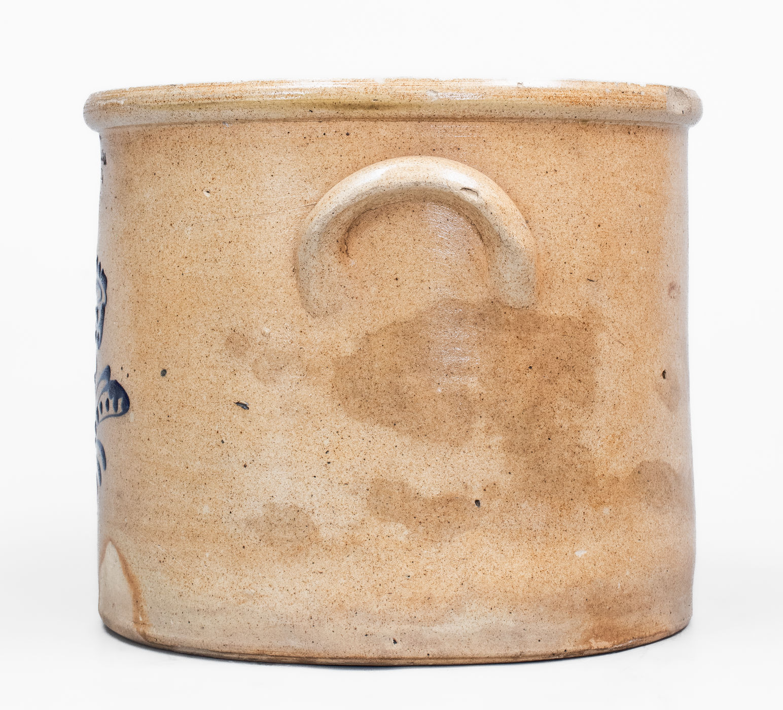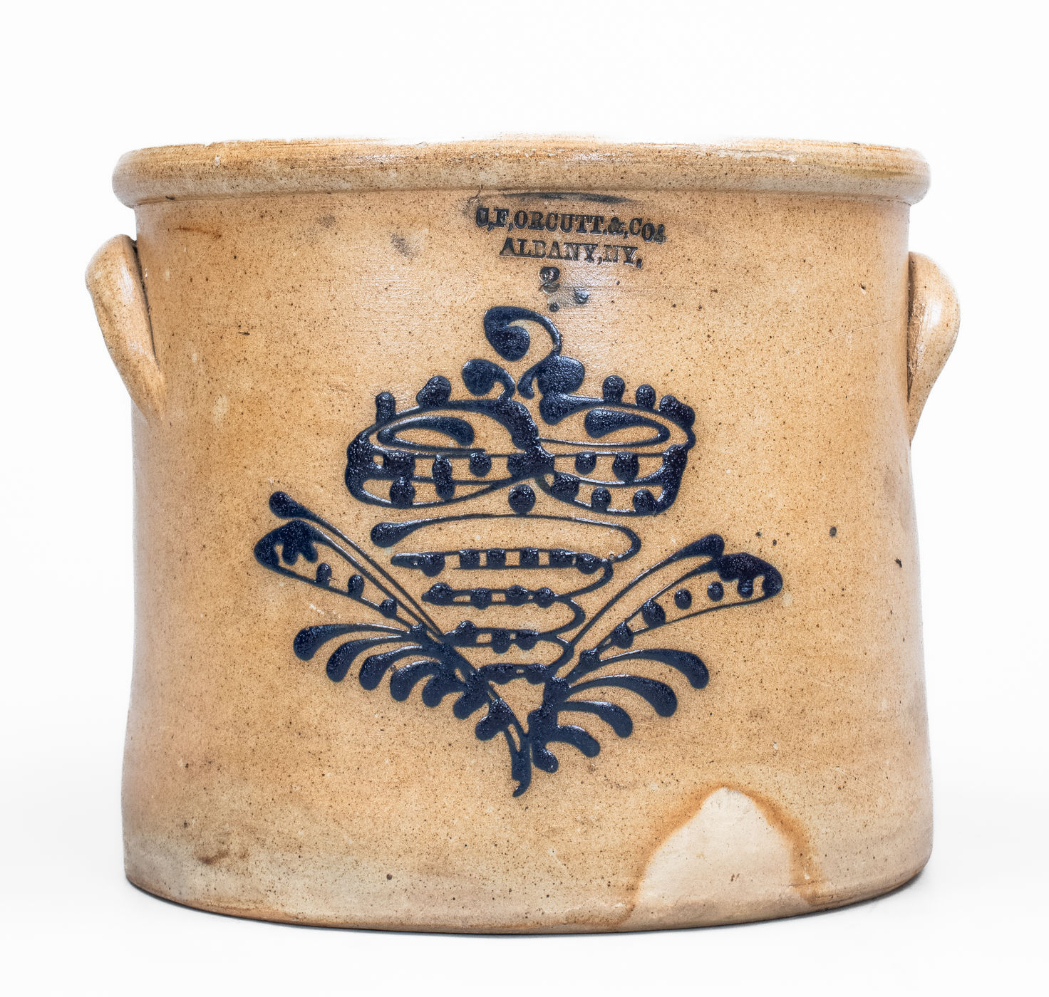 ×C. F. ORCUTT & CO. / ALBANY, NY Stoneware Crock w/ Slip-Trailed Floral Decoration