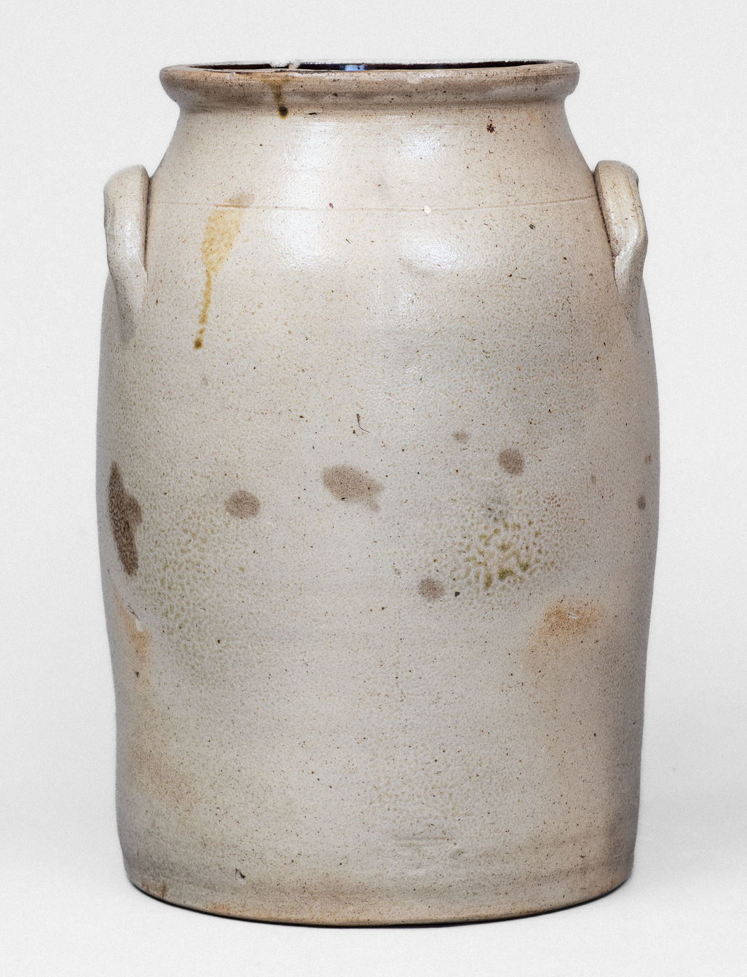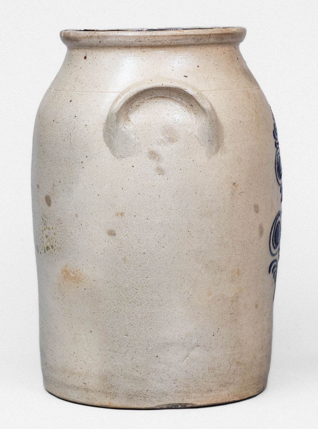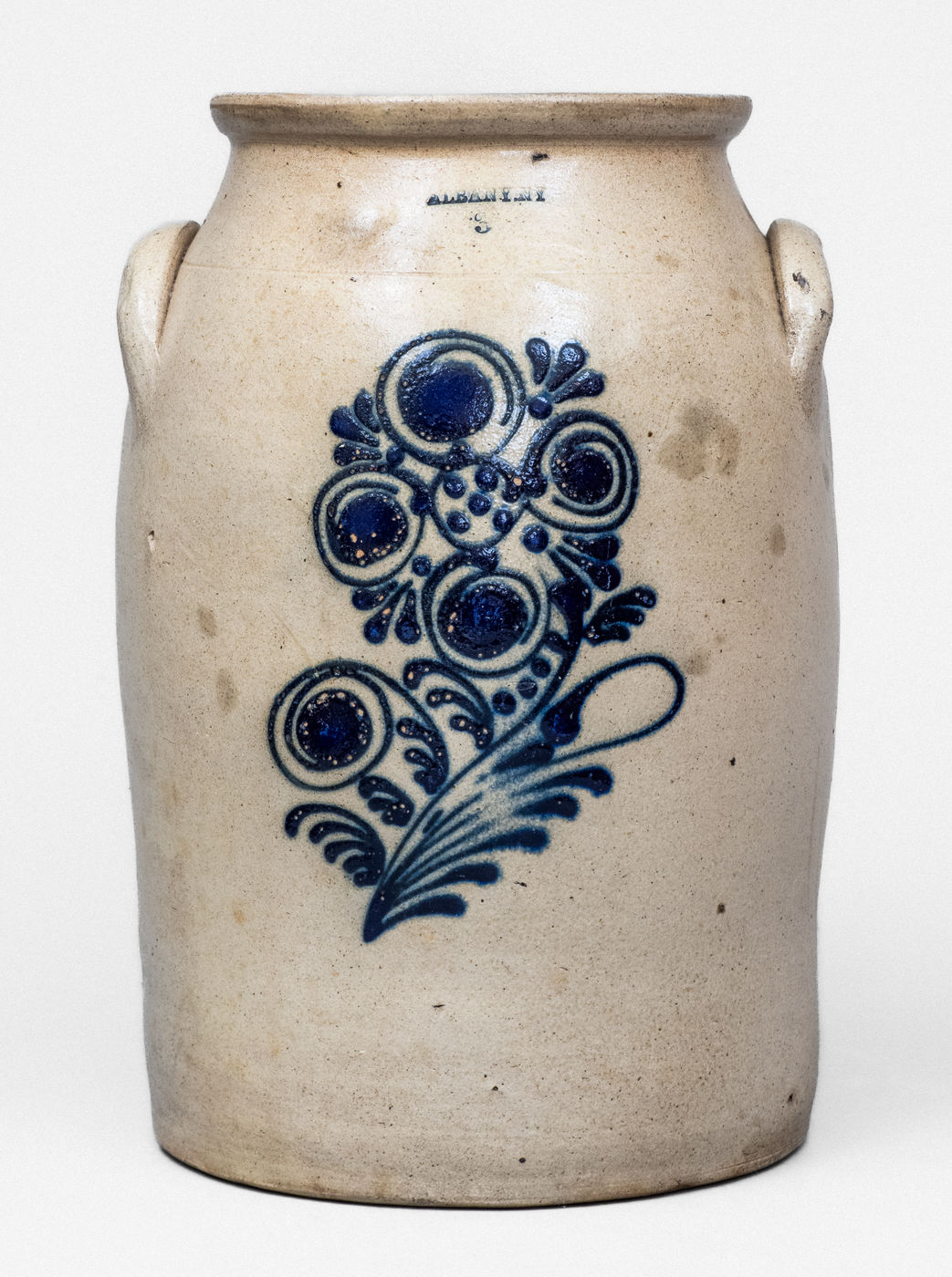 ×2 Gal. ALBANY, NY Stoneware Jar w/ Slip-Trailed Floral Decoration, c1860