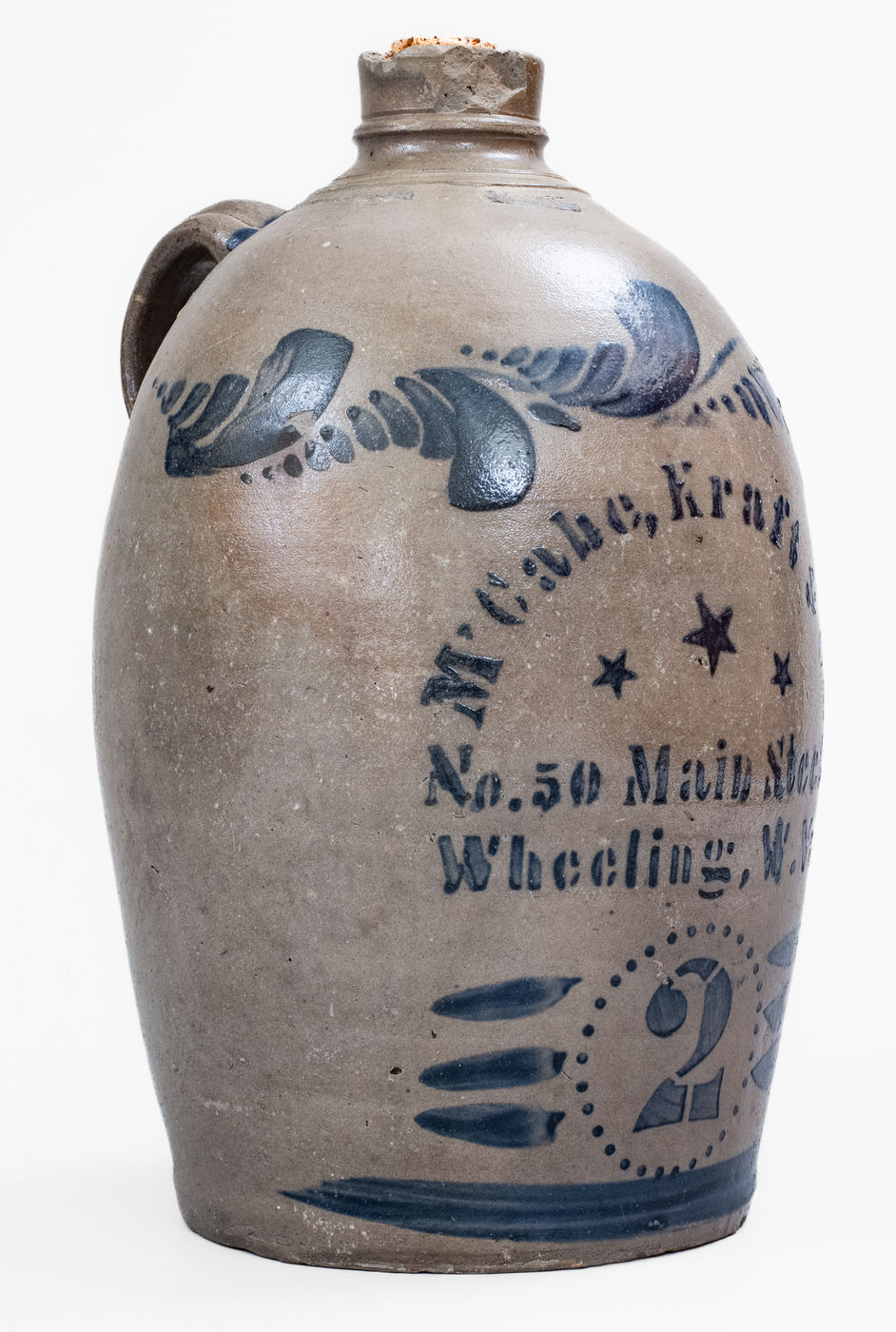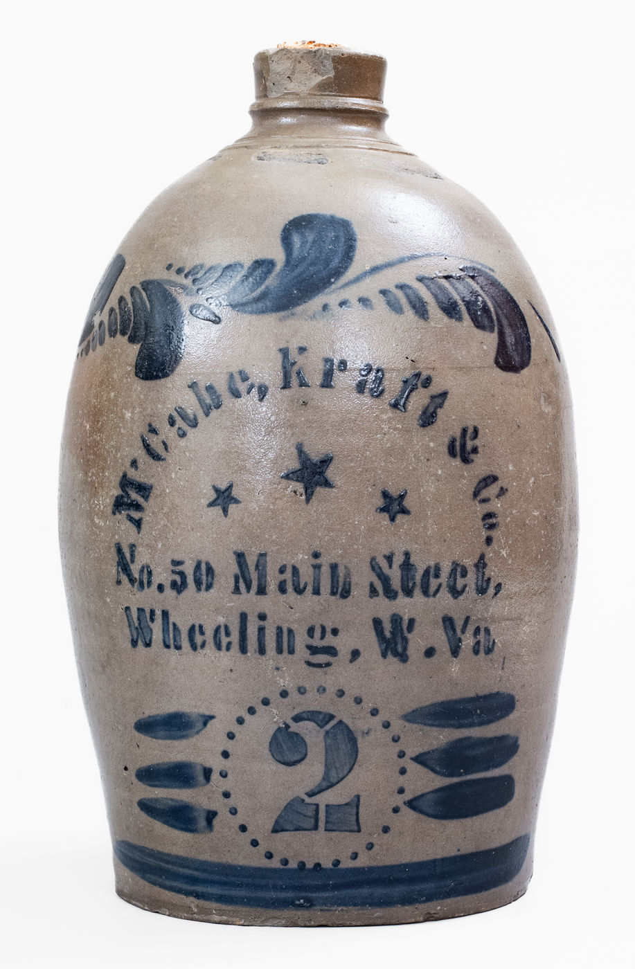 ×Rare McCabe, Kraft & Co. / Wheeling, W. VA Stoneware Advertising Jug w/ Stenciled Stars
