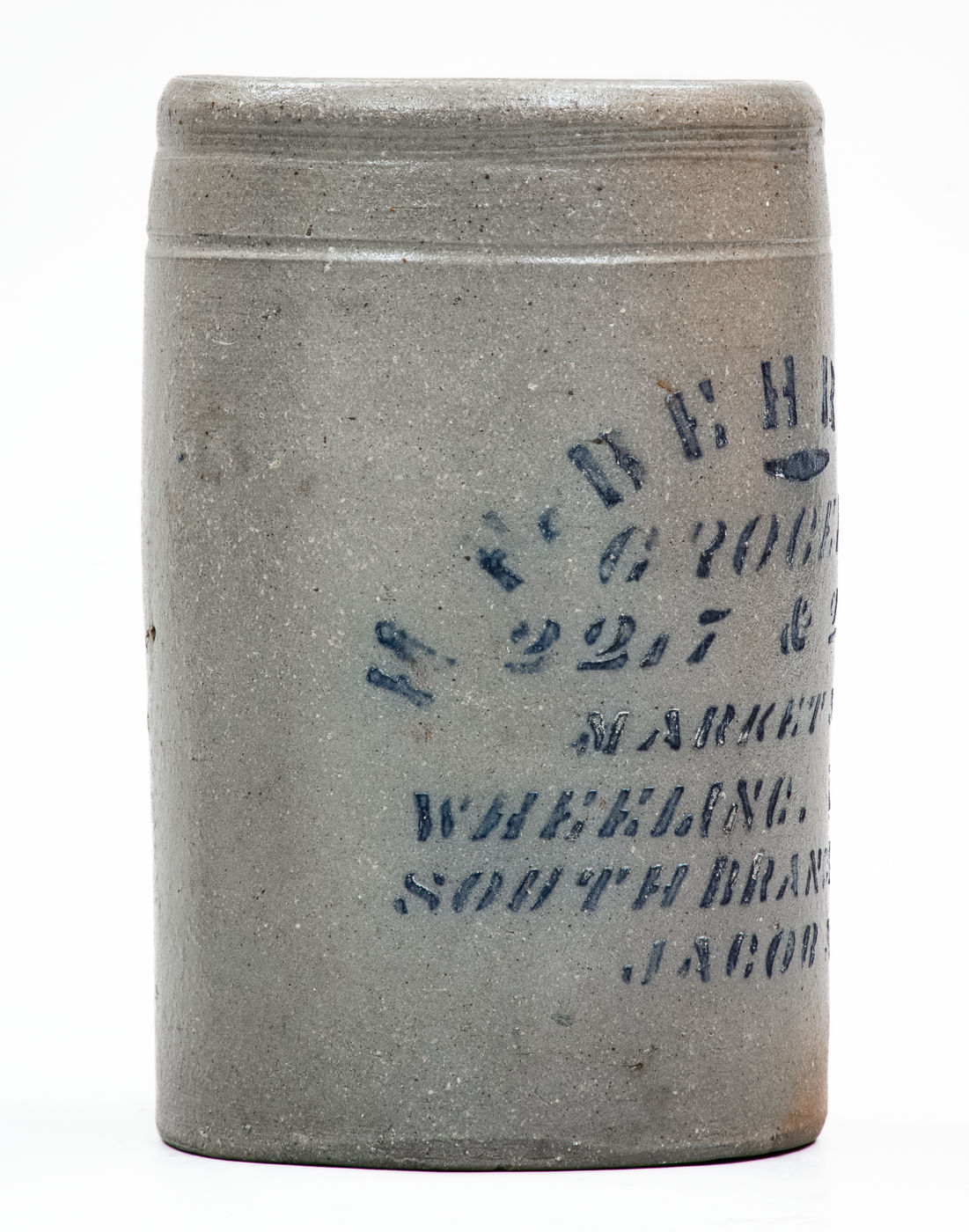 ×Wheeling, W. VA Stoneware Advertising Canning Jar