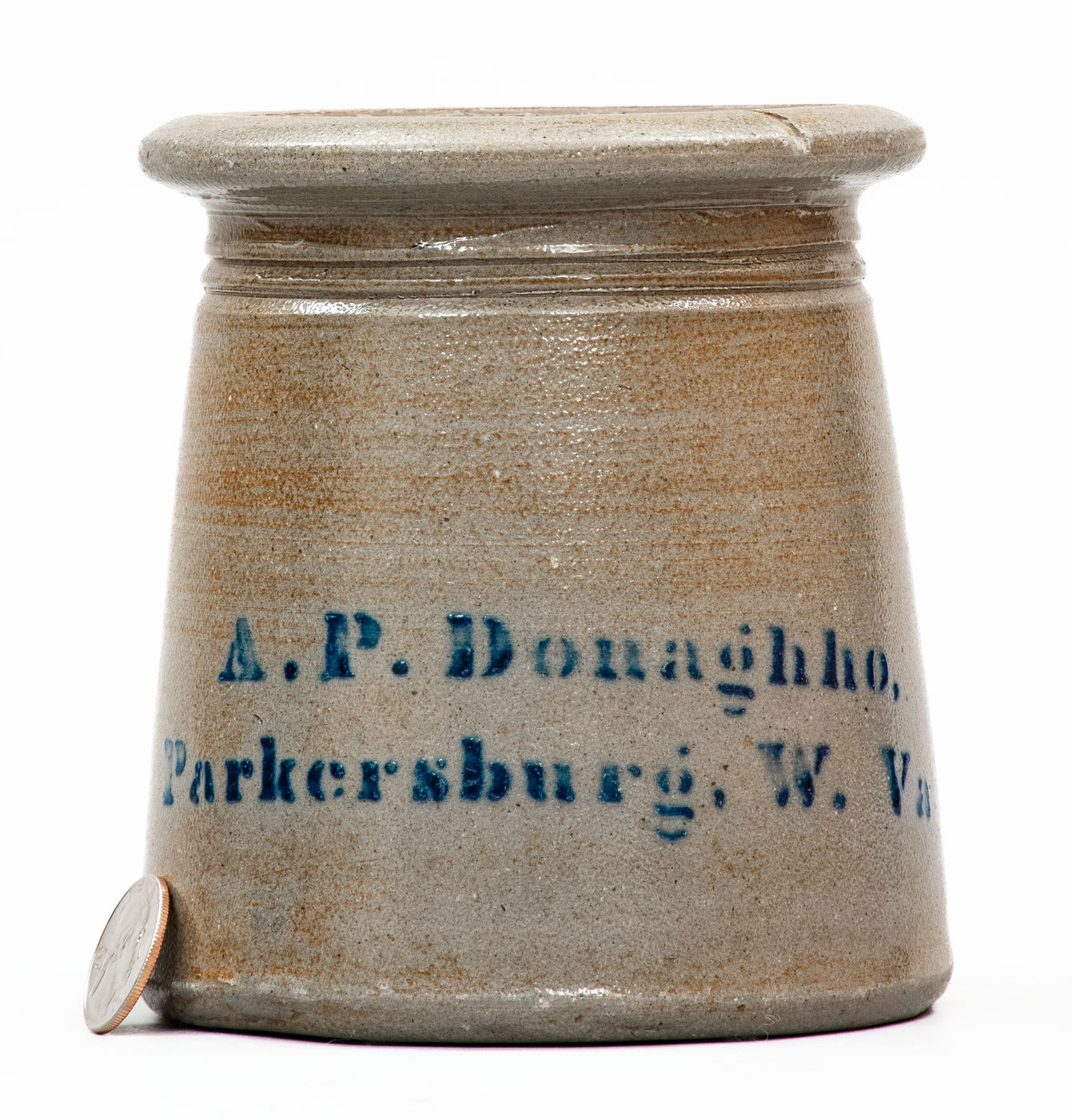 ×Rare A. P. DONAGHHO / PARKERSBURG, W. VA / 1876 Stoneware "Top Hat" Canning Jar