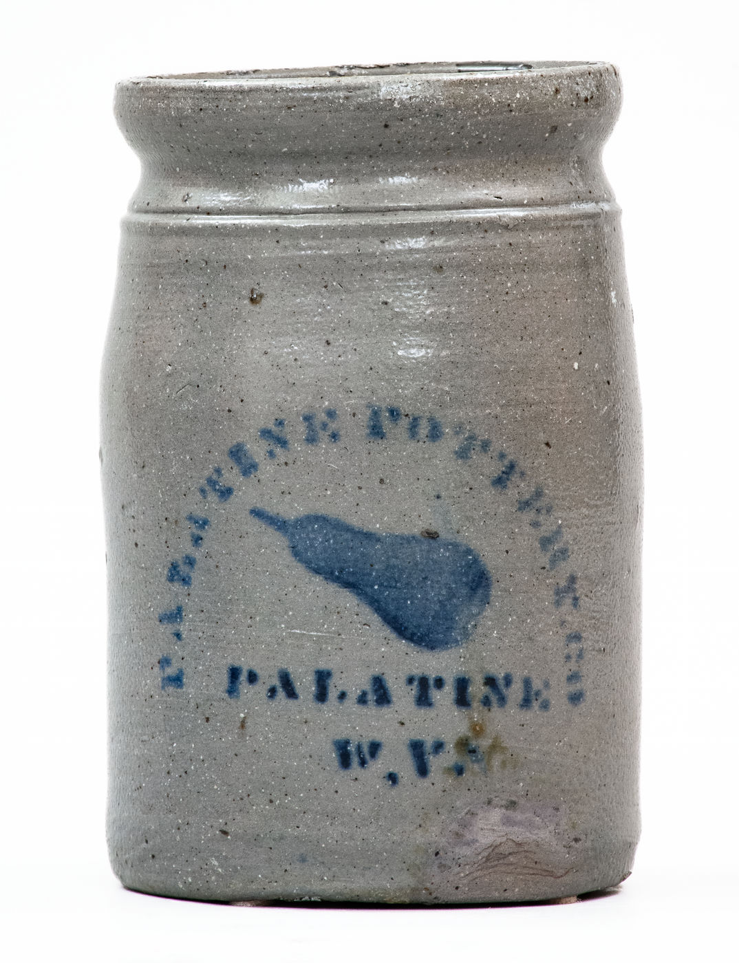 ×PALATINE POTTERY / PALATINE, W. VA Stoneware Canning Jar w/ Stenciled Pear