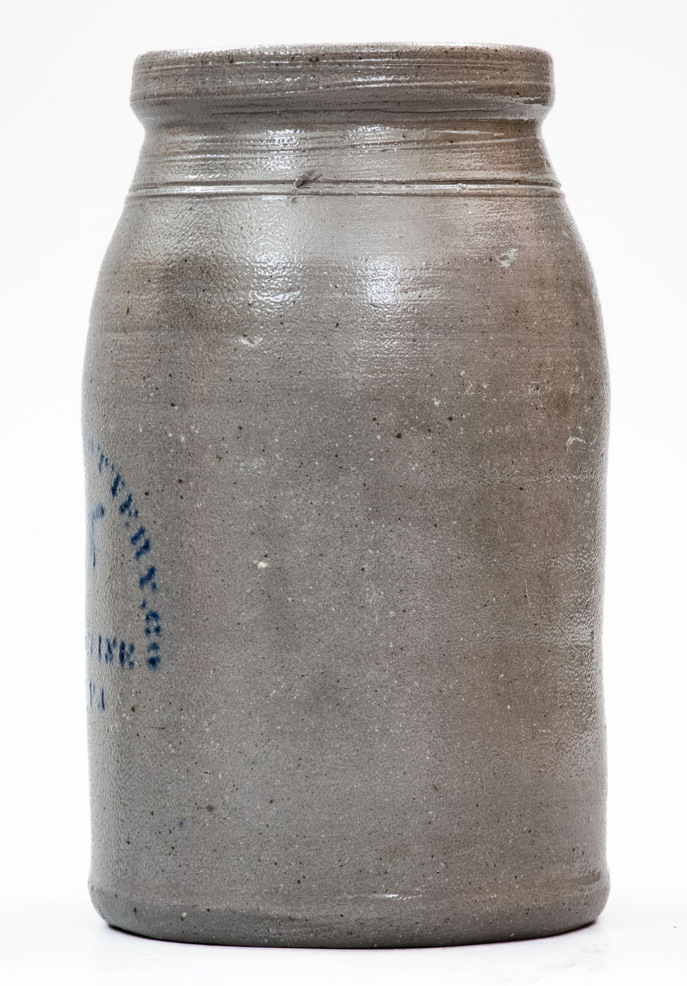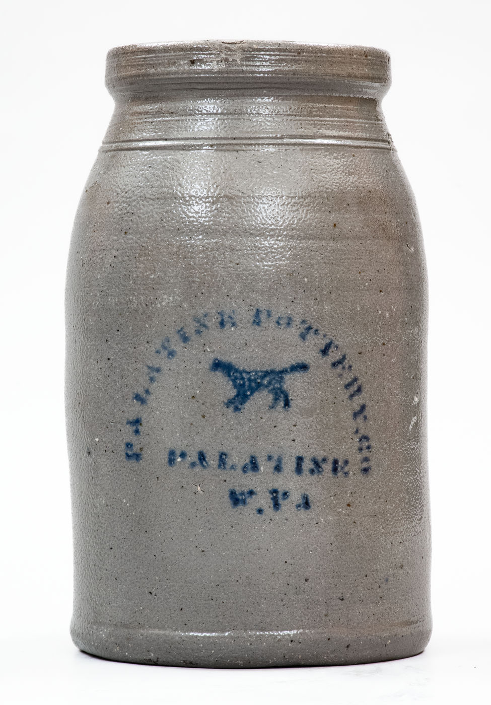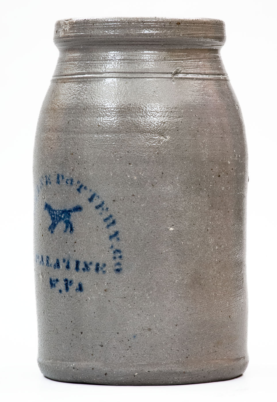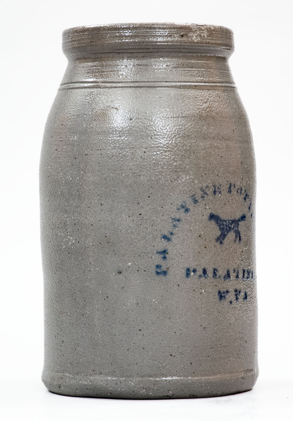 ×PALATINE POTTERY CO. / PALATINE, W. VA Stoneware Canning Jar w/ Stenciled Dog