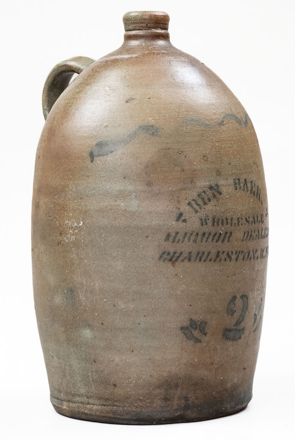 ×2 Gal. BEN BAER / CHARLESTON, W. VA Stoneware Stenciled Advertising Jug