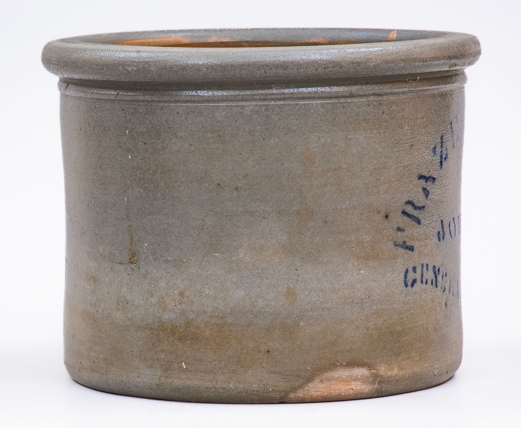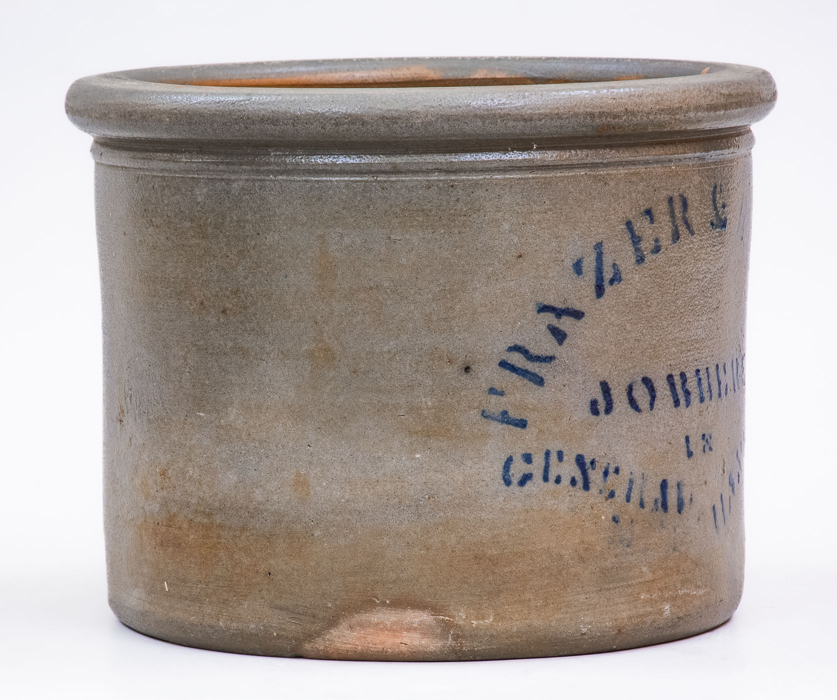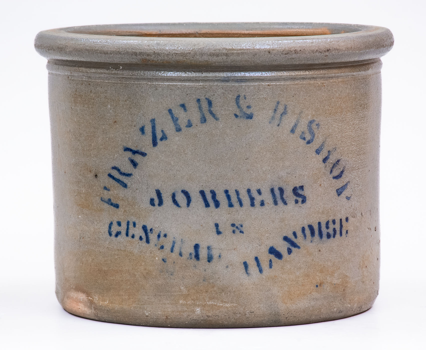 ×Rare FRAZER & BISHOP (Martinsburg, WV) Stoneware Stenciled Advertising Crock