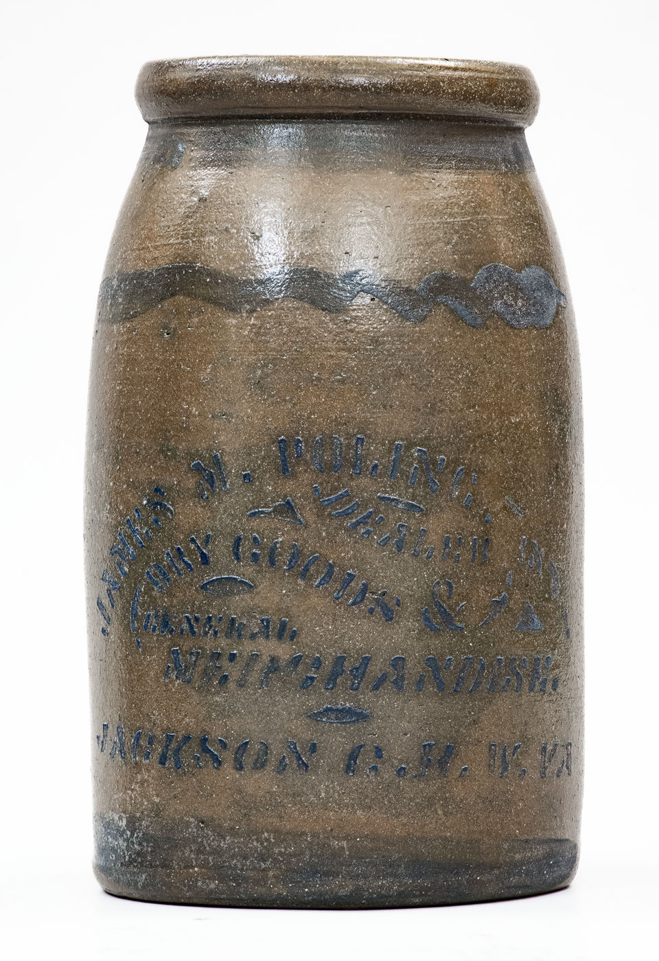 ×JACKSON COURT HOUSE, W. VA Stoneware Stenciled Canning Jar