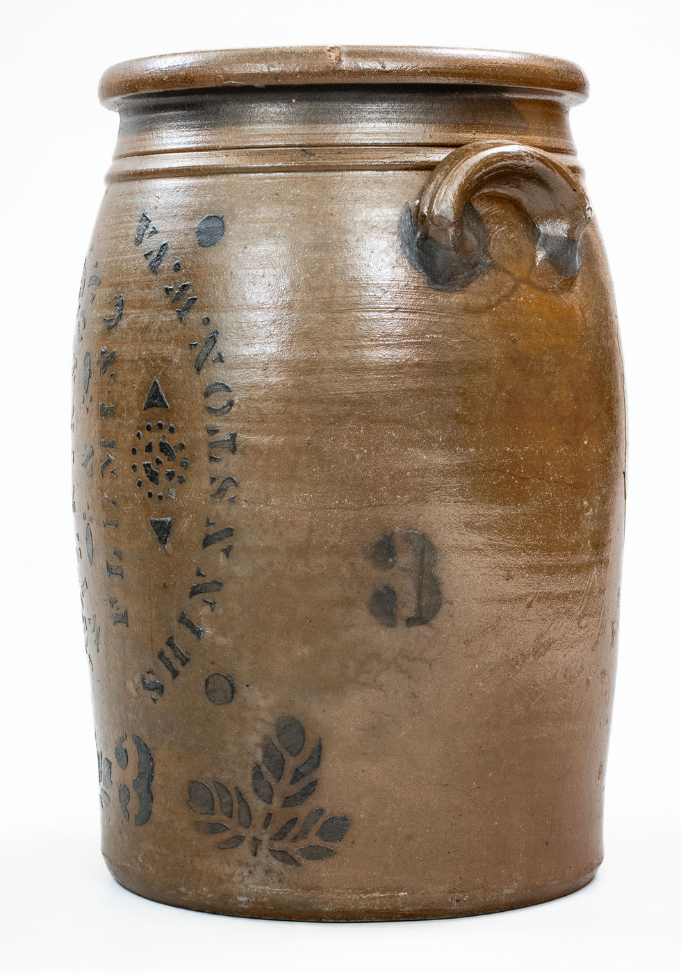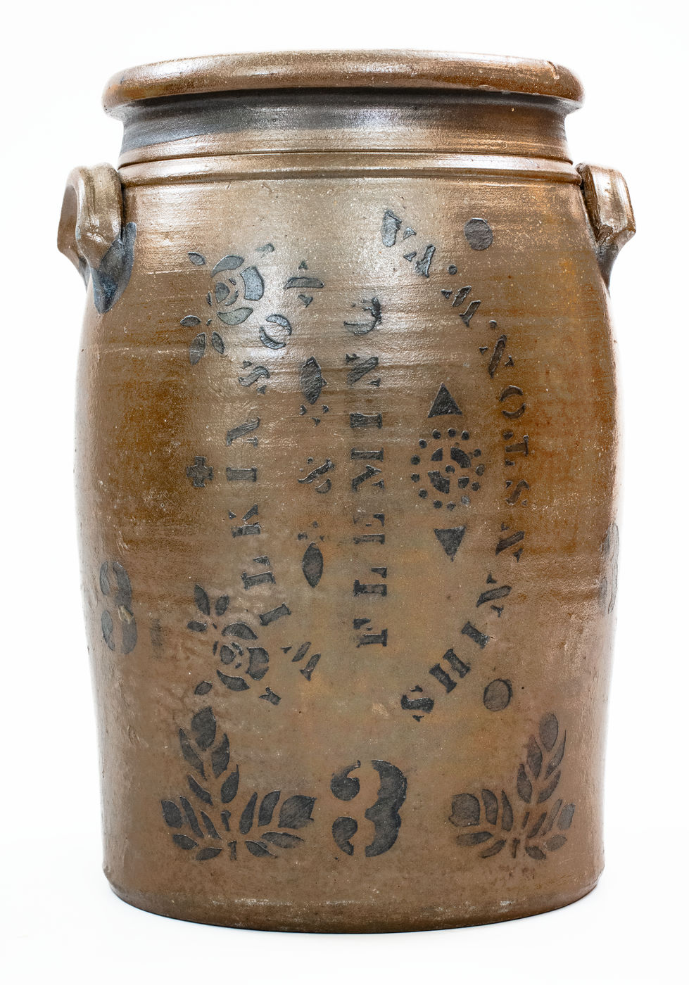 ×Rare 3 Gal. WILKINSON & FLEMING / SHINNSTON, W. VA. Stoneware Jar w/ Sideways Stencil