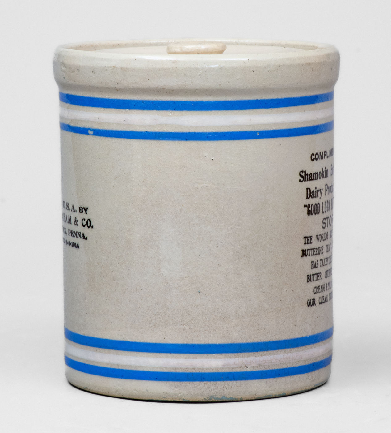 ×Braddock, PA Stoneware Jar w/ Shamokin Butterine Co., Shamokin, PA Advertising