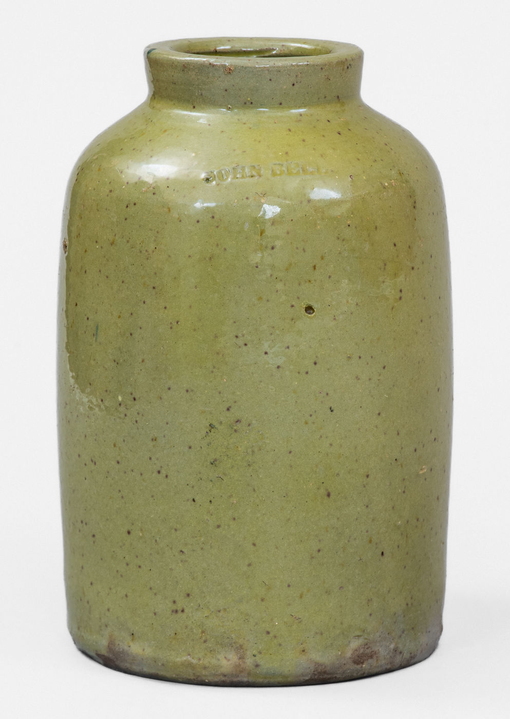 ×Scarce JOHN BELL, Waynesboro, PA Copper-Glazed Stoneware Canning Jar, c1840-80