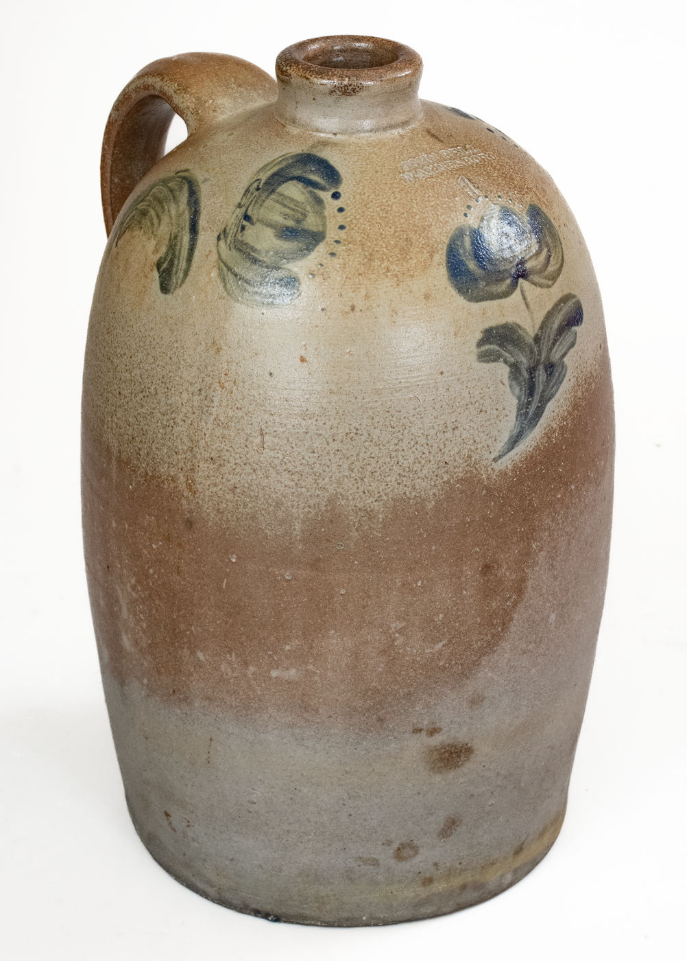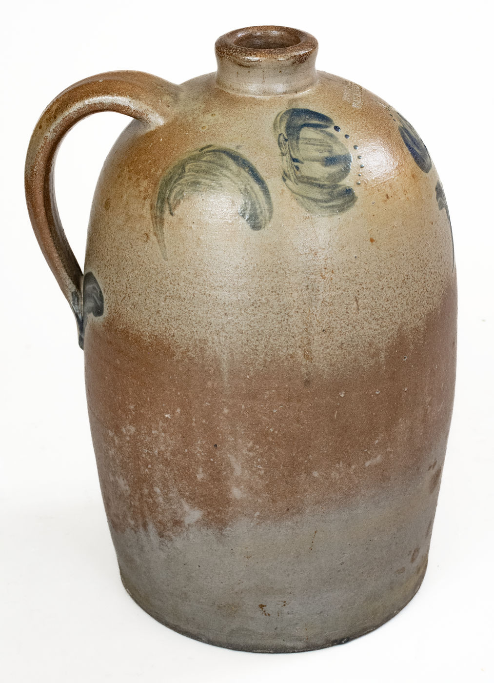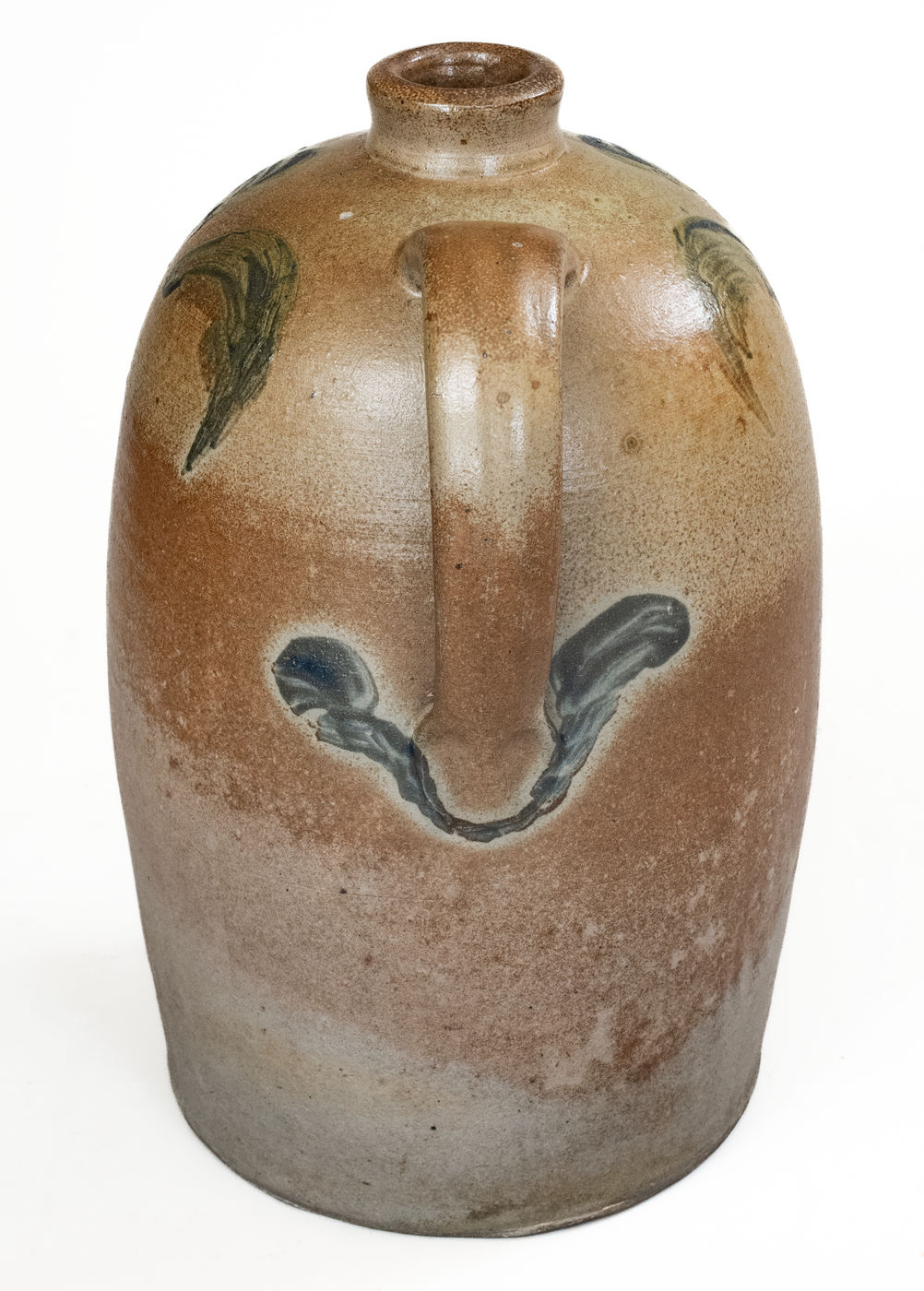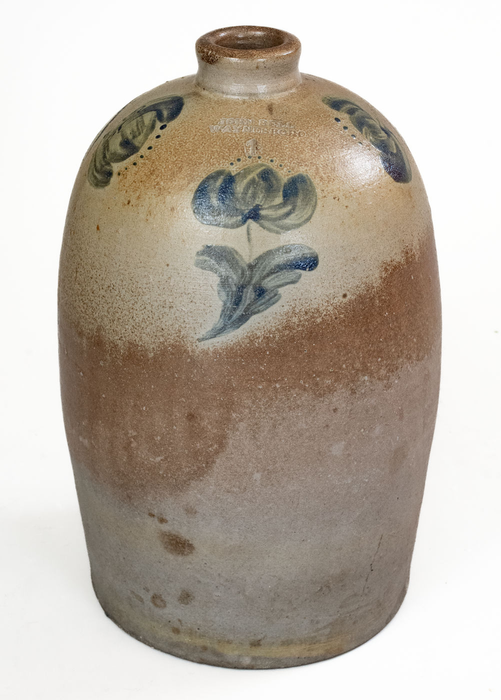 ×JOHN BELL / WAYNESBORO, PA Stoneware Jug w/ Cobalt Floral Decoration, c1850-80