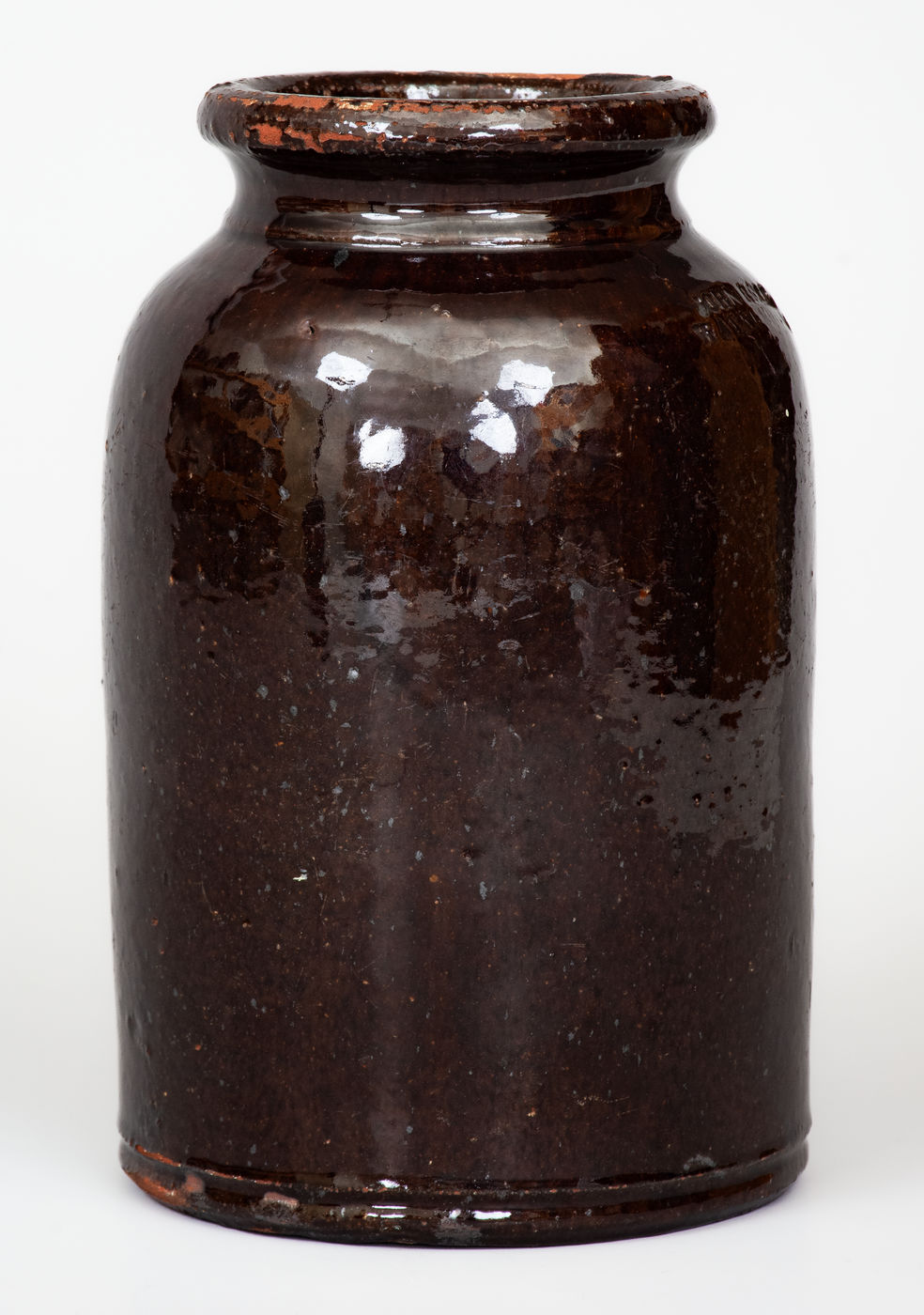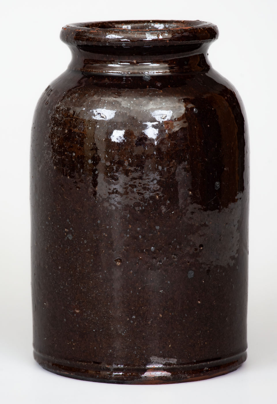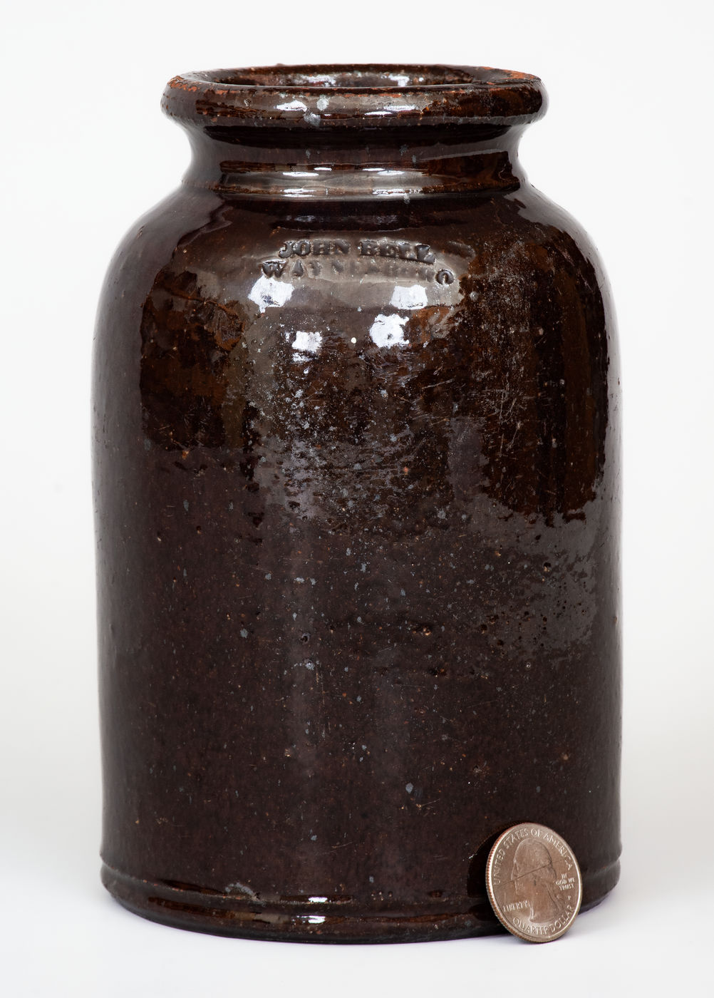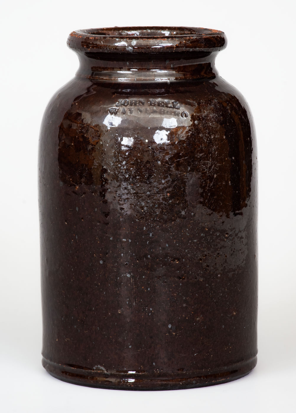 ×Manganese-Glazed JOHN BELL / WAYNESBORO Redware Canning Jar, c1850-80