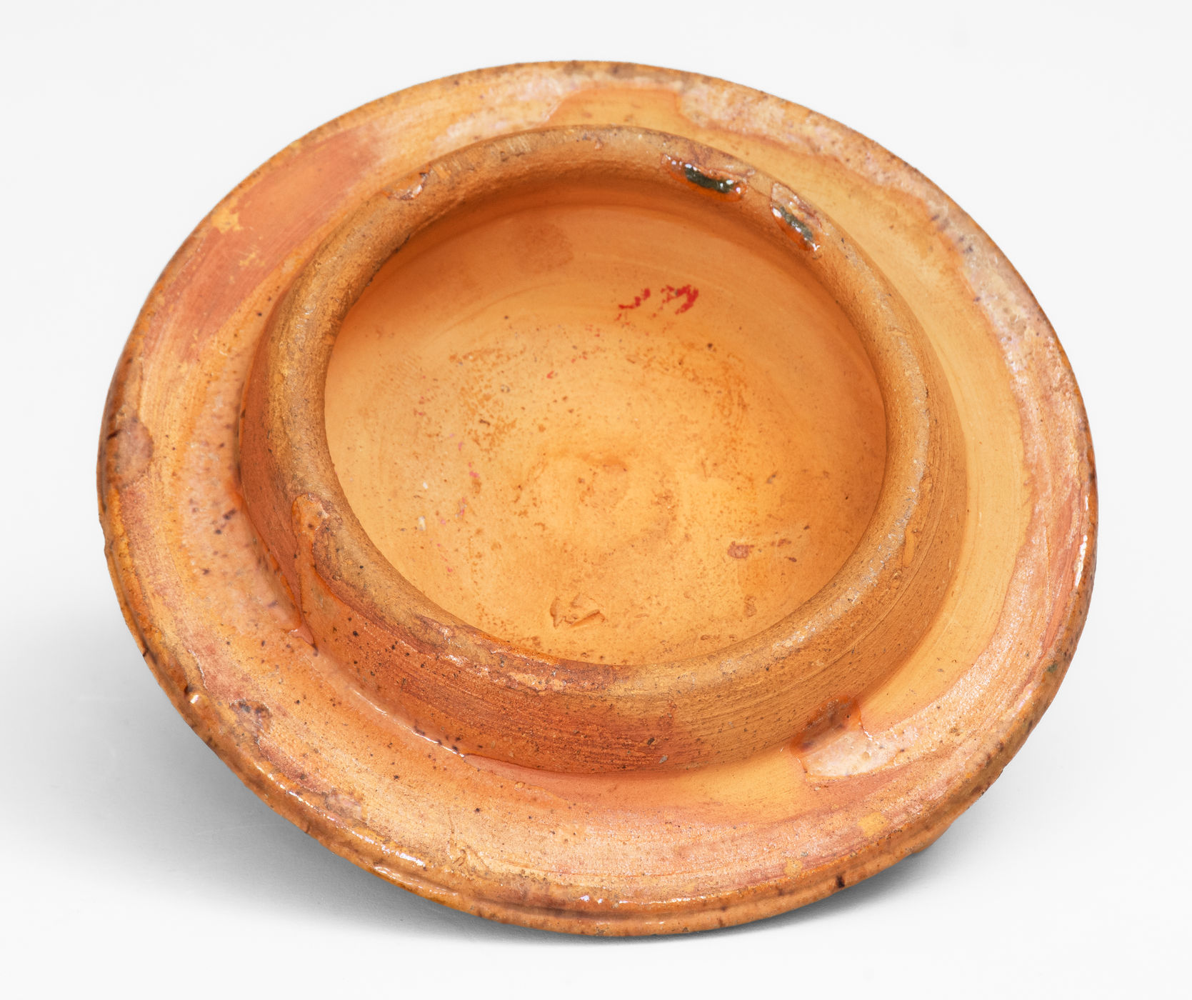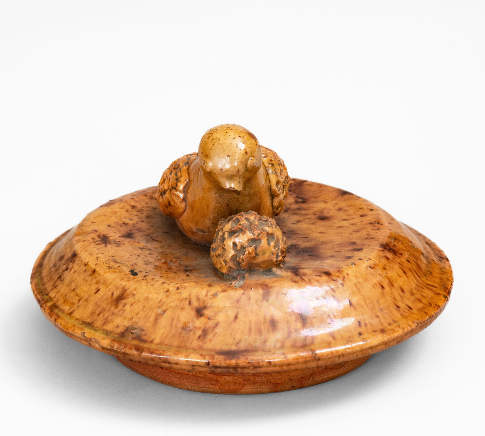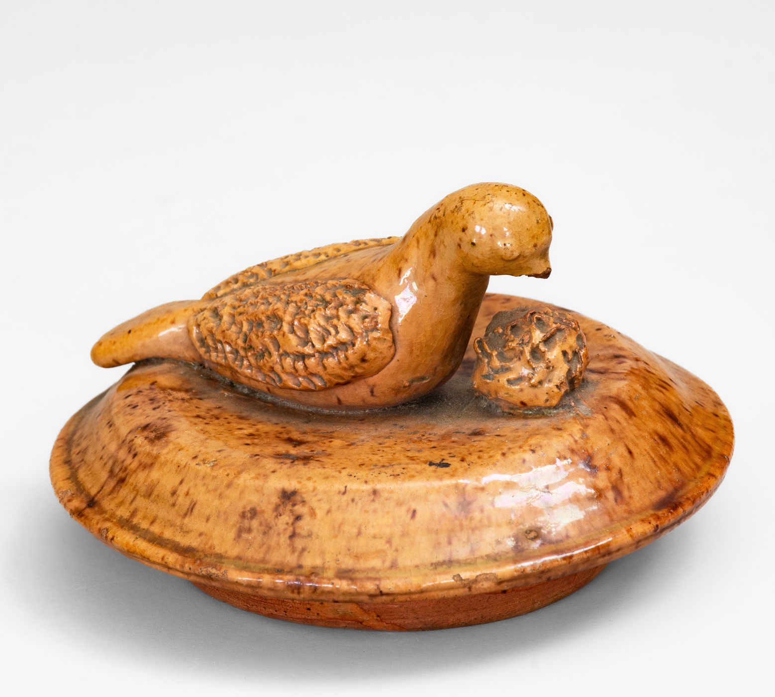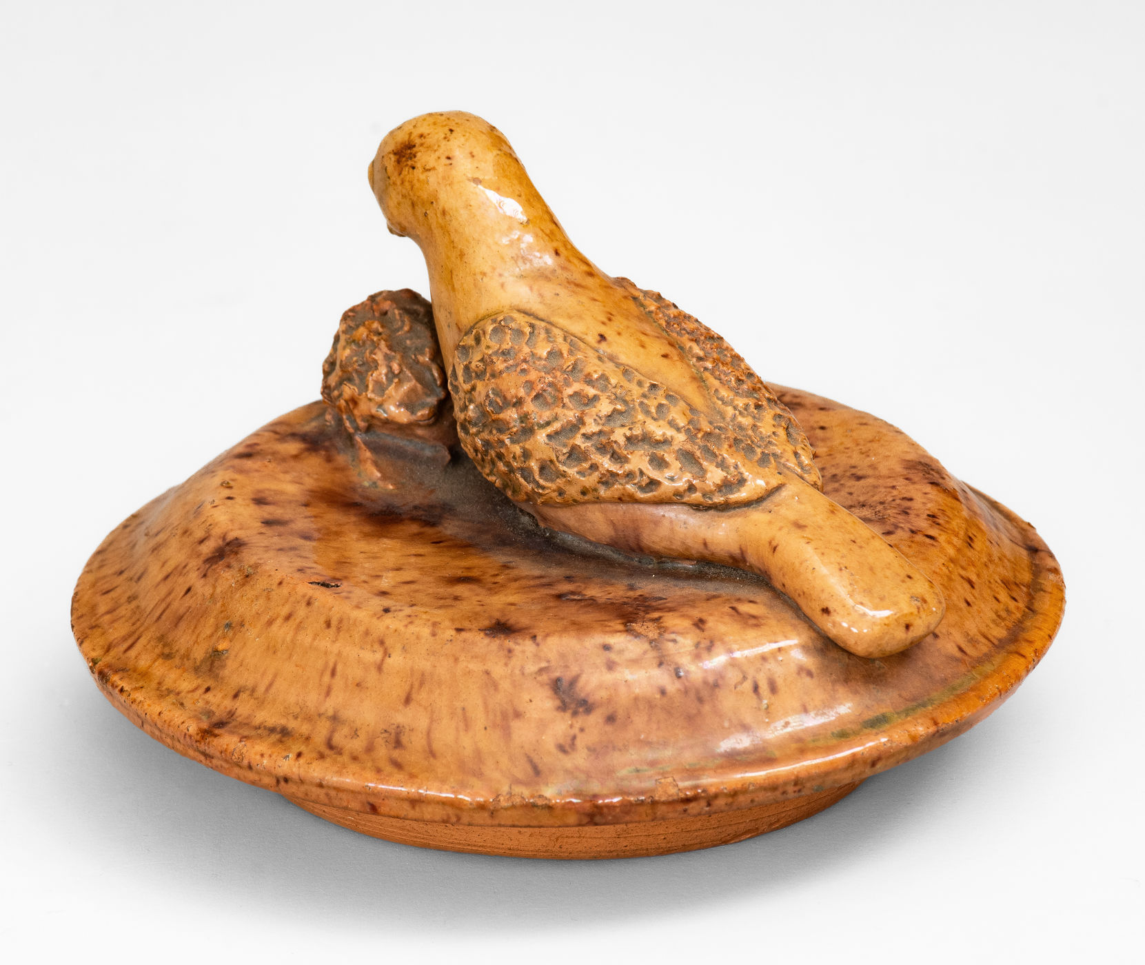×Rare Redware Sugar Bowl Lid w/ Bird Finial, attrib. James C. Mackley or Anthony W. Bacher, Thurmont, MD
