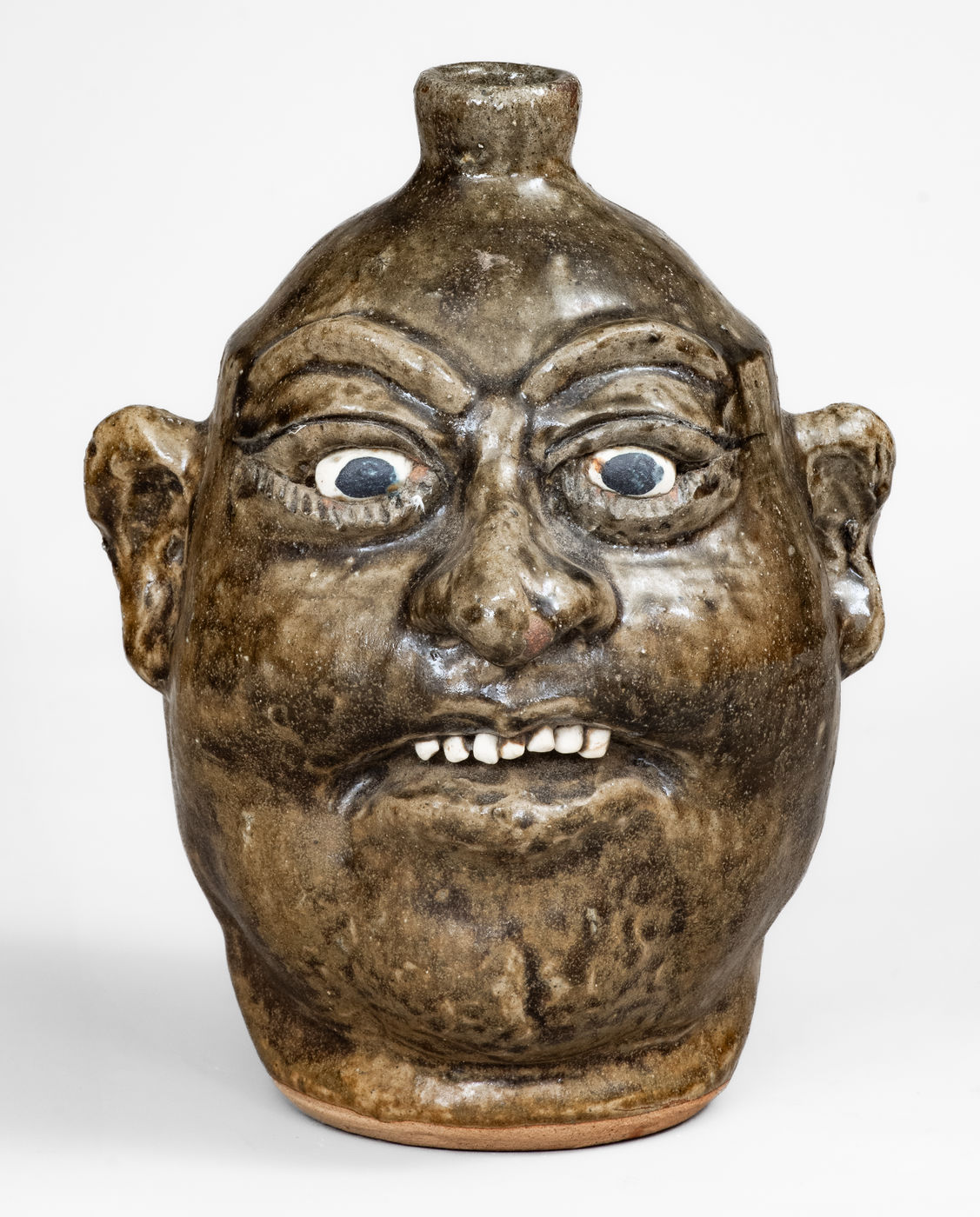 ×Lanier Meaders Stoneware Face Jug, Cleveland, GA, Dated 1988
