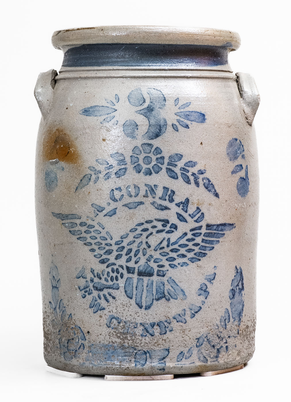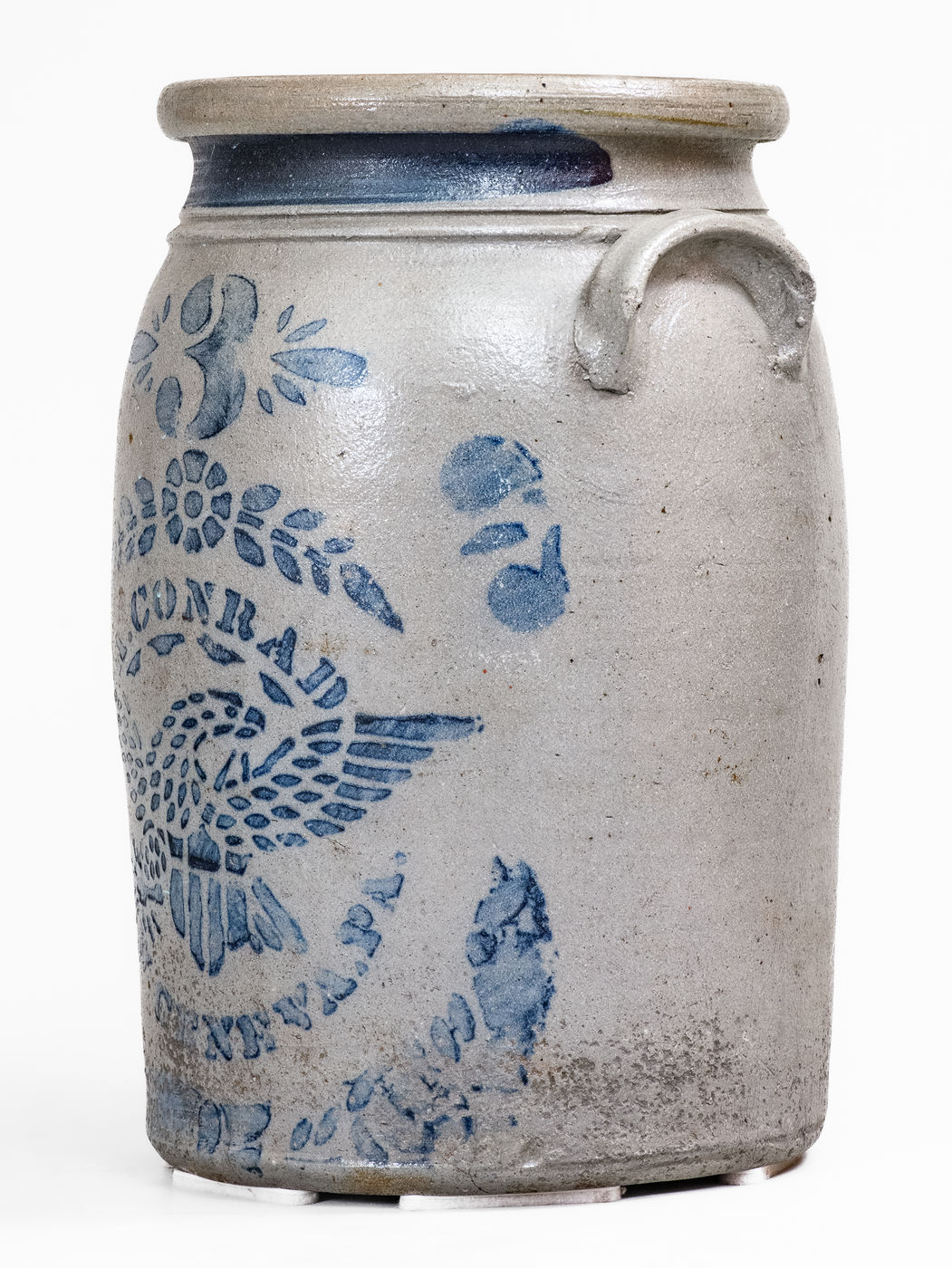 ×3 Gal. A. CONRAD / NEW GENEVA, PA Stoneware Jar w/ Eagle Decoration