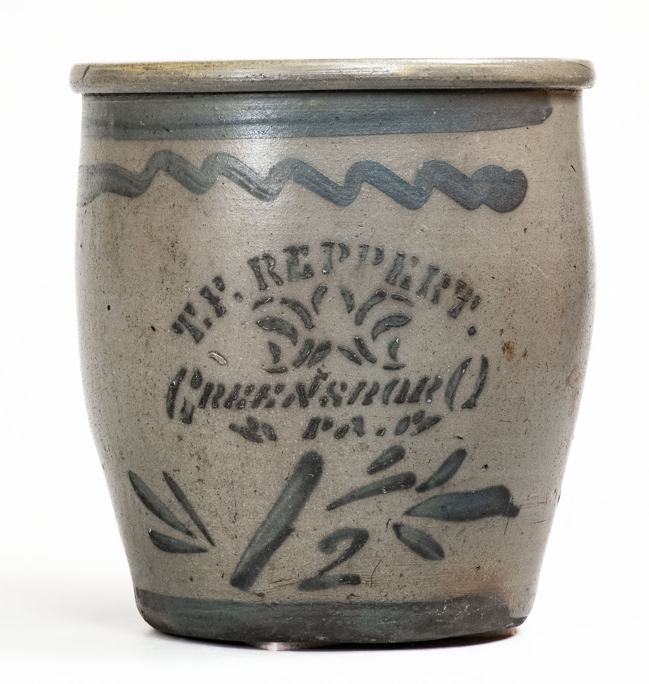 ×1 1/2 Gal. T. F. REPPERT / GREENSBORO, PA Stoneware Cream Jar