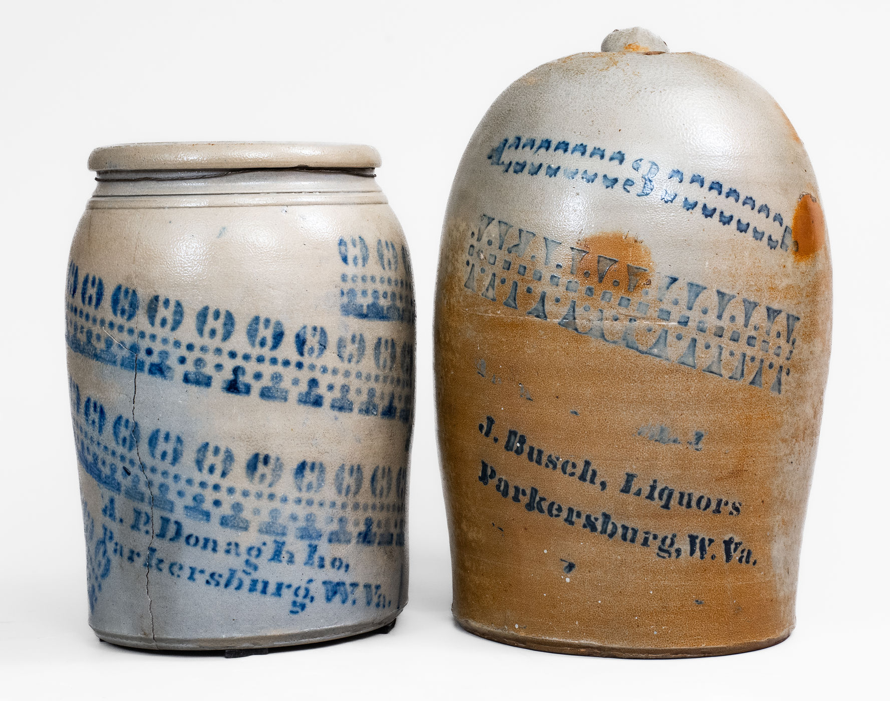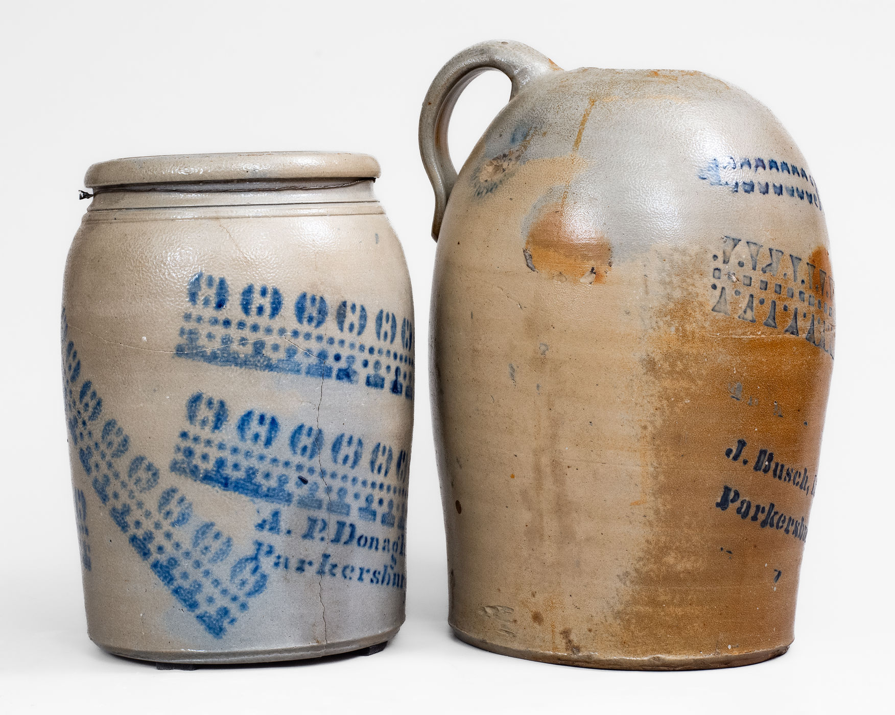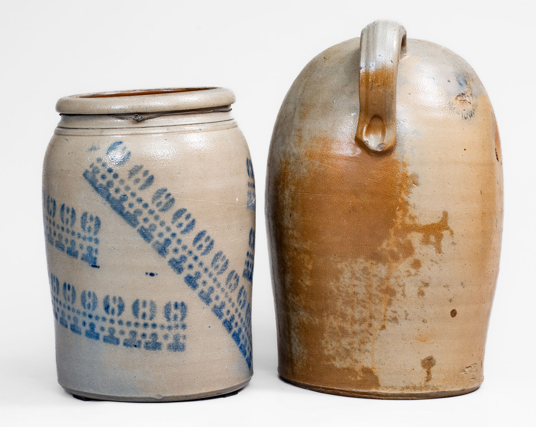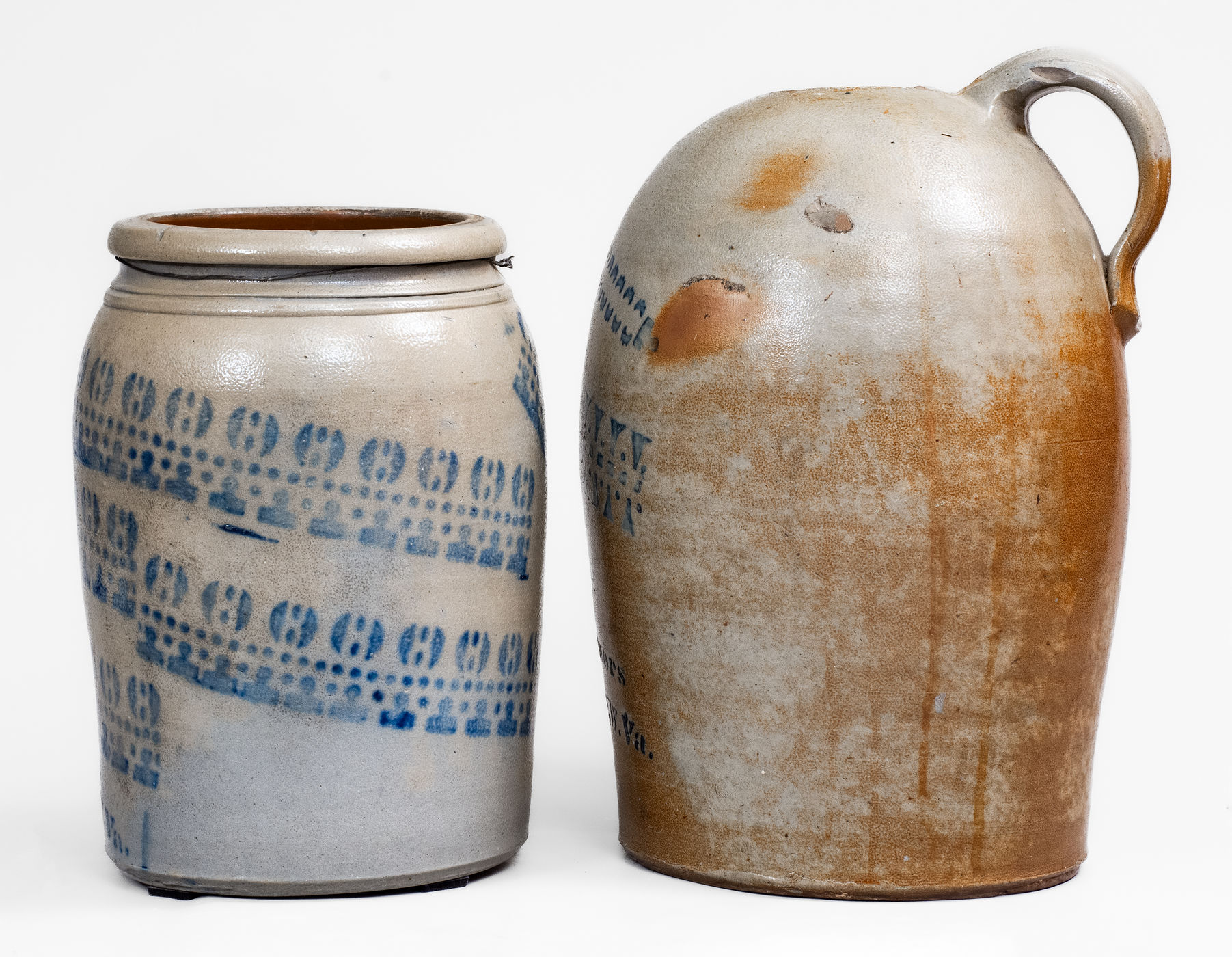 ×Lot of Two: Rare Pieces of Cobalt-Stenciled West Virginia Stoneware