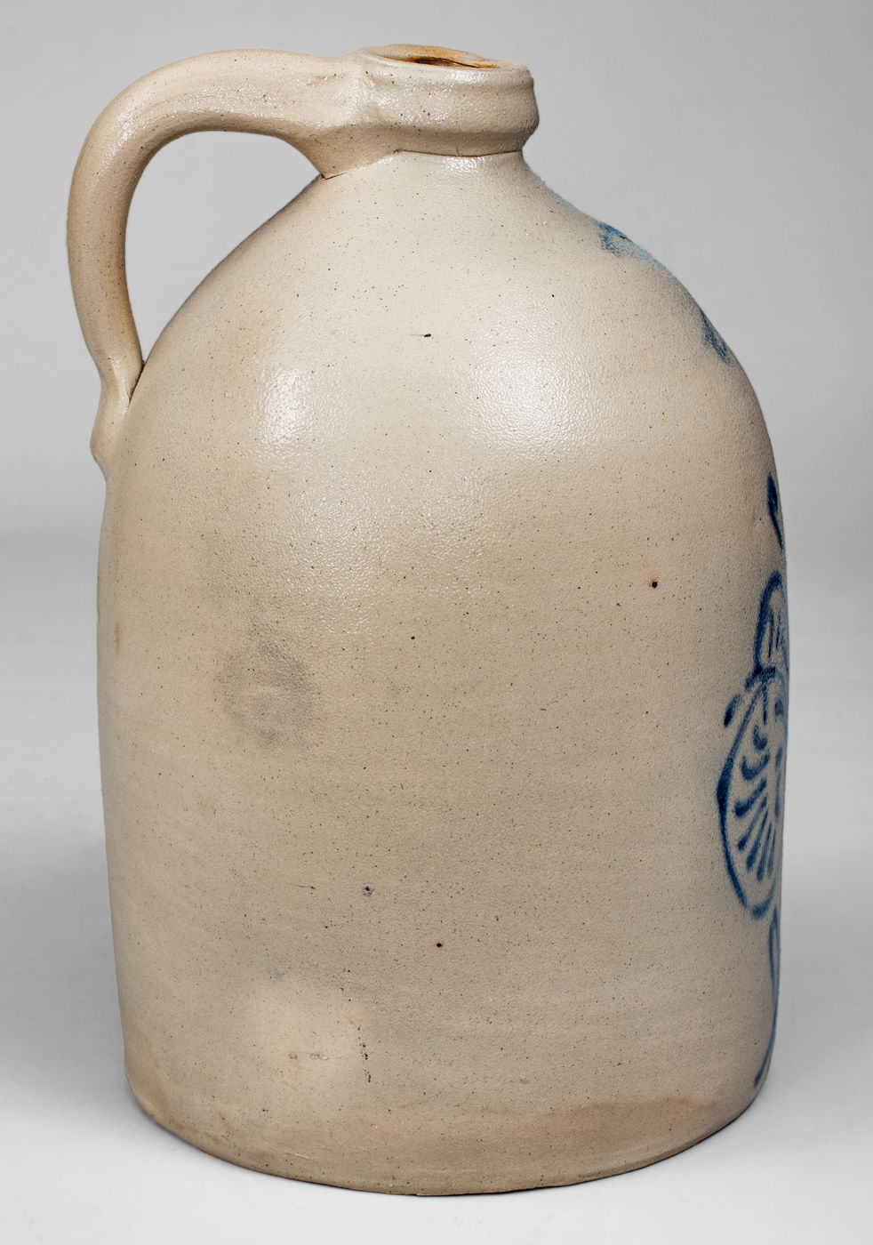 ×WHITES UTICA Stoneware Jug w/ Floral Decoration, circa 1870