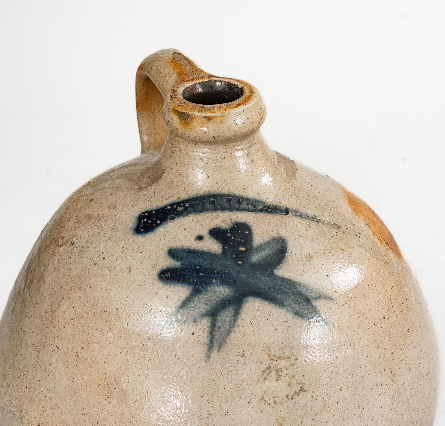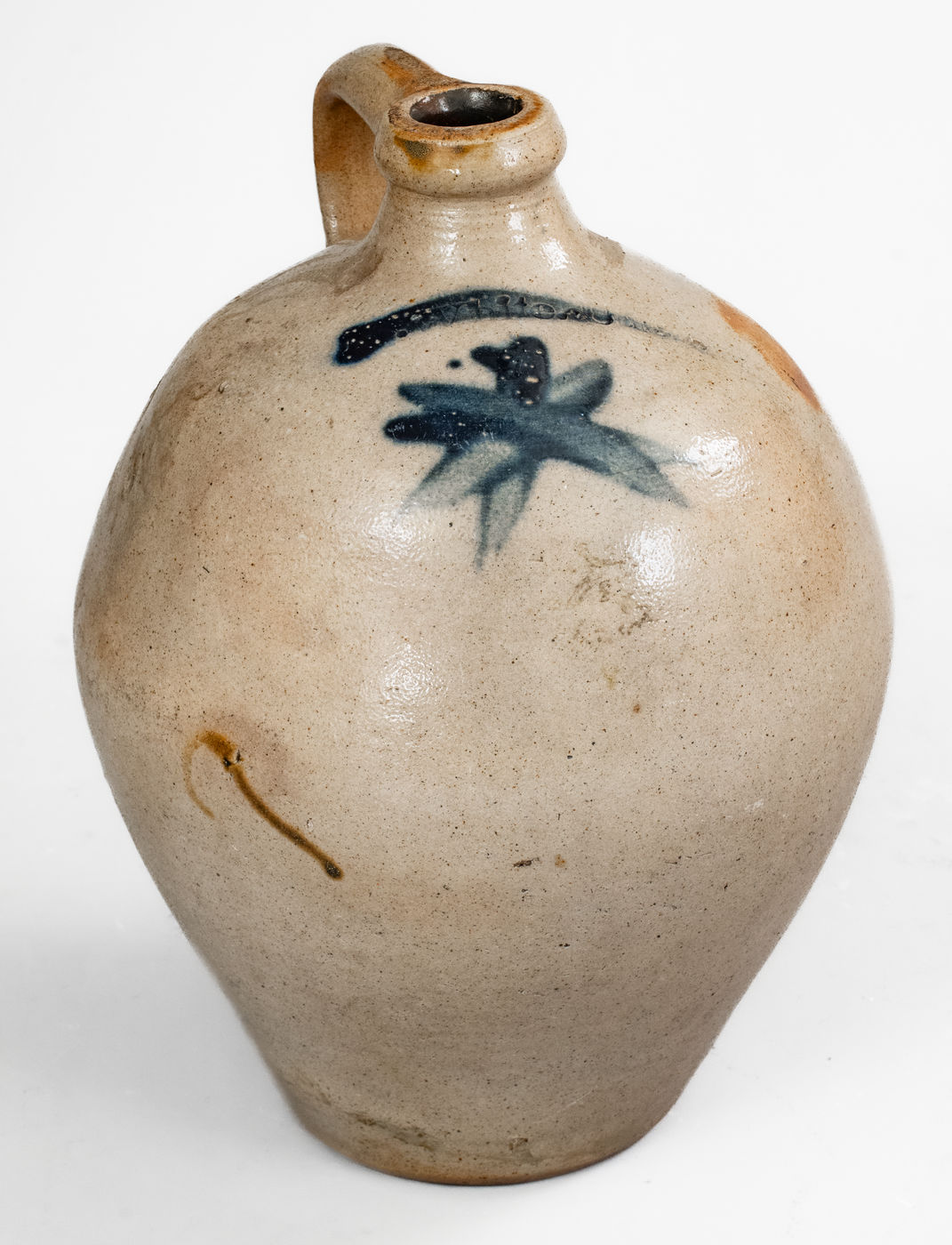 ×Ovoid "N. White, Utica.," NY Stoneware Jug w/ Asterisk Decoration, c1840