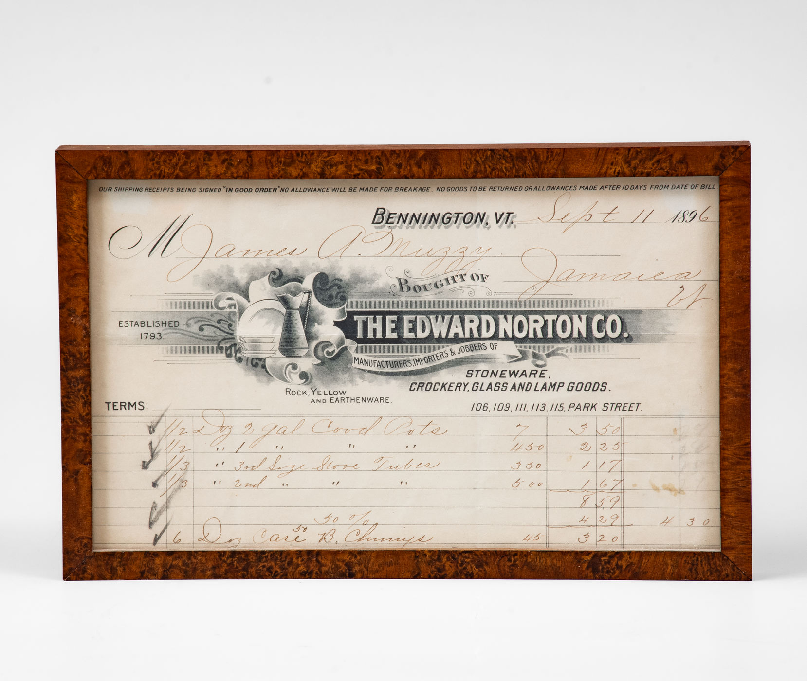 ×Edward Norton Co. (Bennington, Vermont) Billhead, 1896