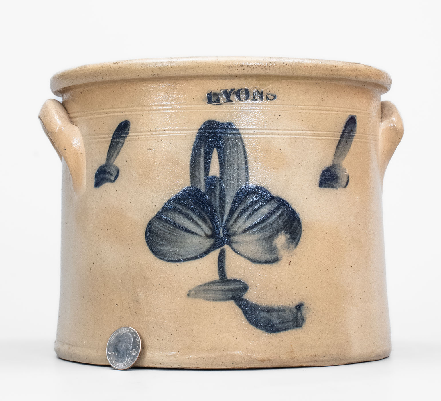 ×LYONS, New York Stoneware Crock w/ Floral Decoration