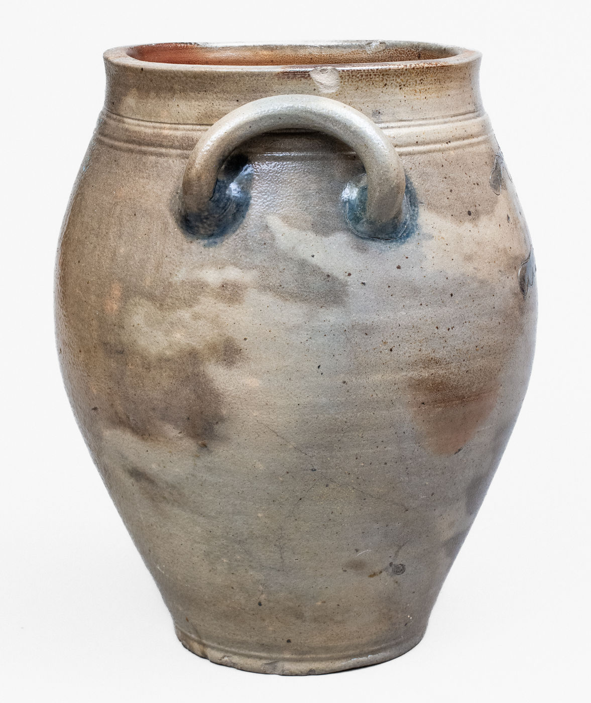 ×Four-Gallon Connecticut Stoneware Jar w/ Incised Floral Decoration, early 19th century