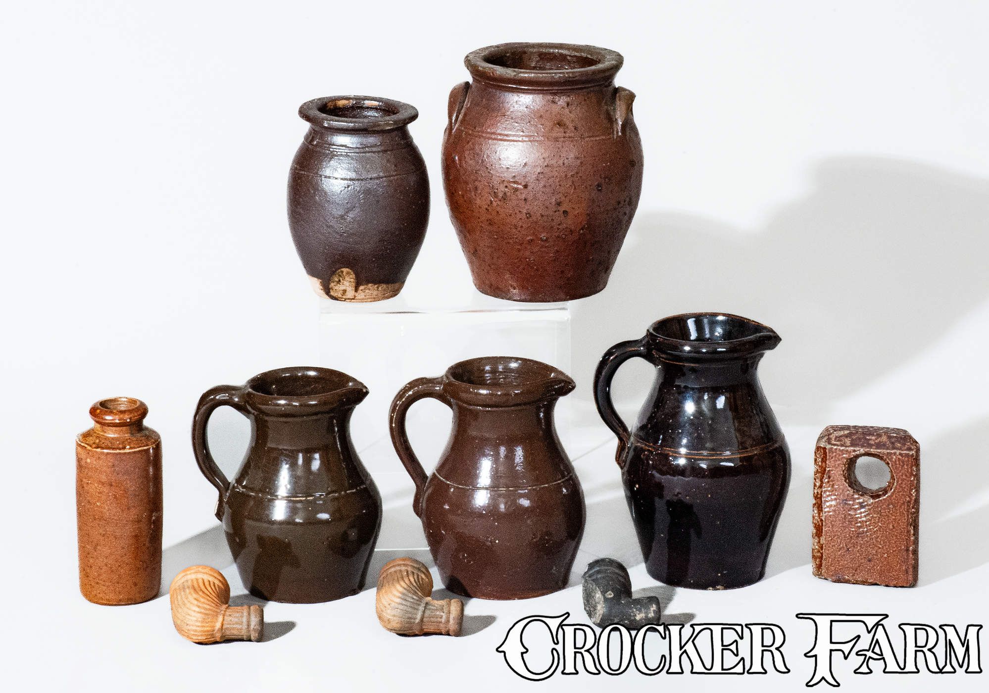 Lot of Ten: Ohio Pottery incl. Pitchers, Kiln Test, and Point Pleasant Pipes