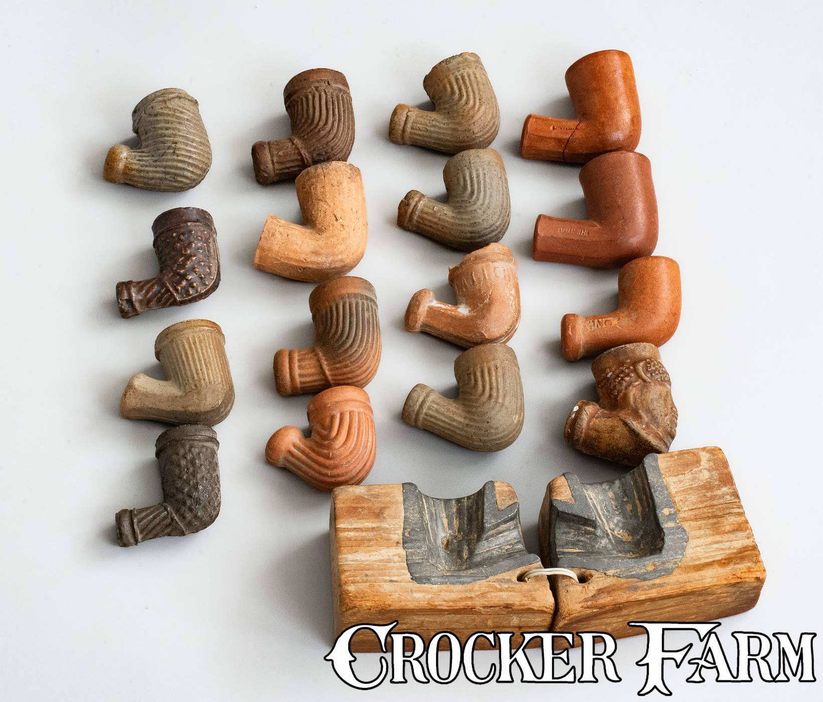 Pipe Mold w/ 16 Stoneware Pipe Heads, probably Moore County, NC