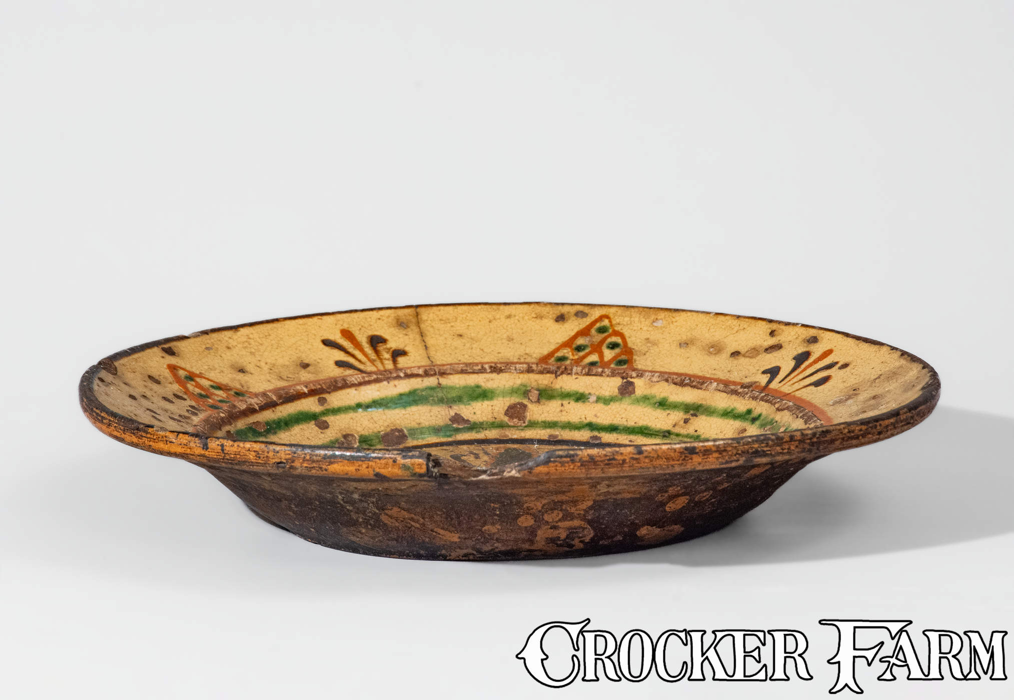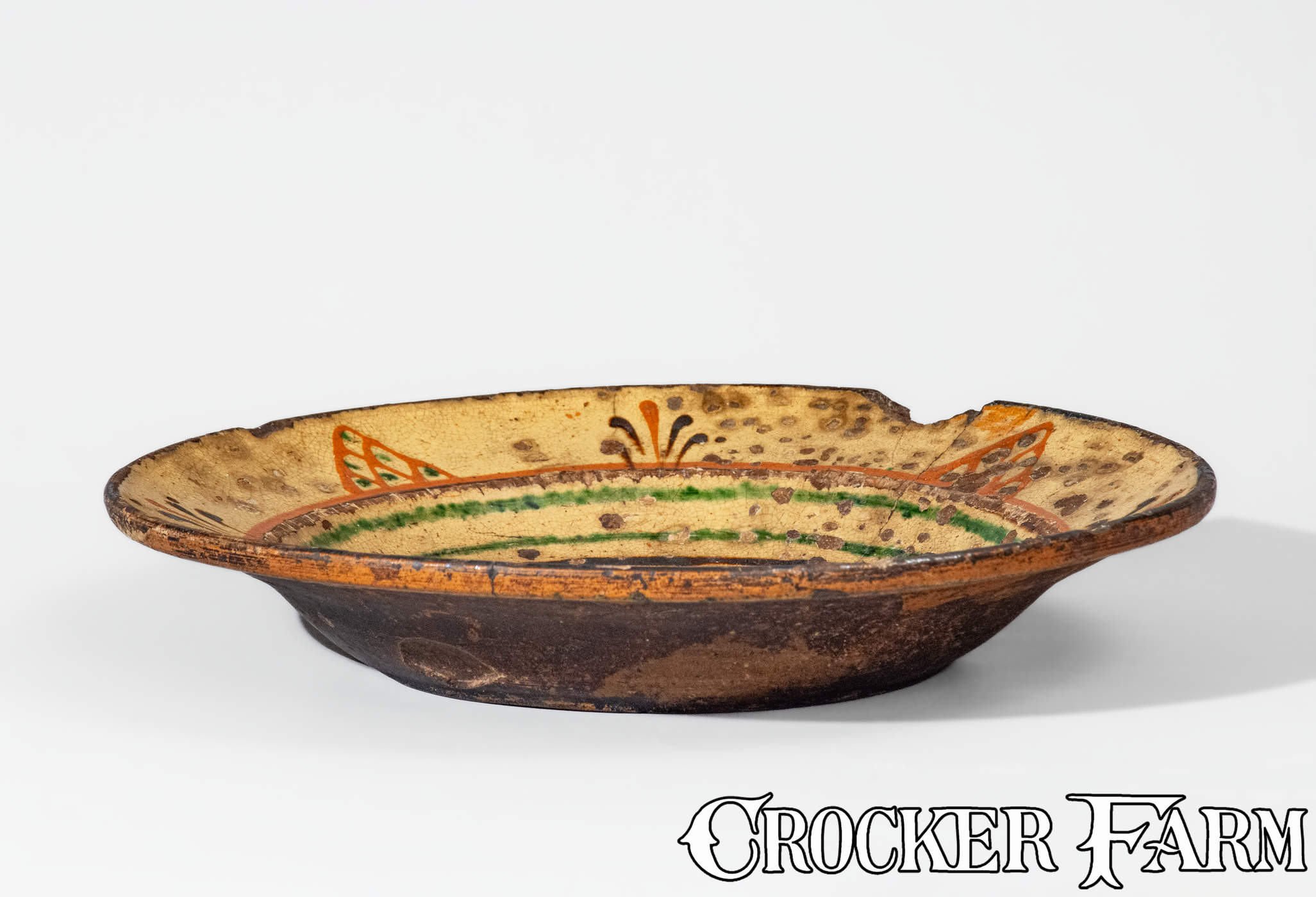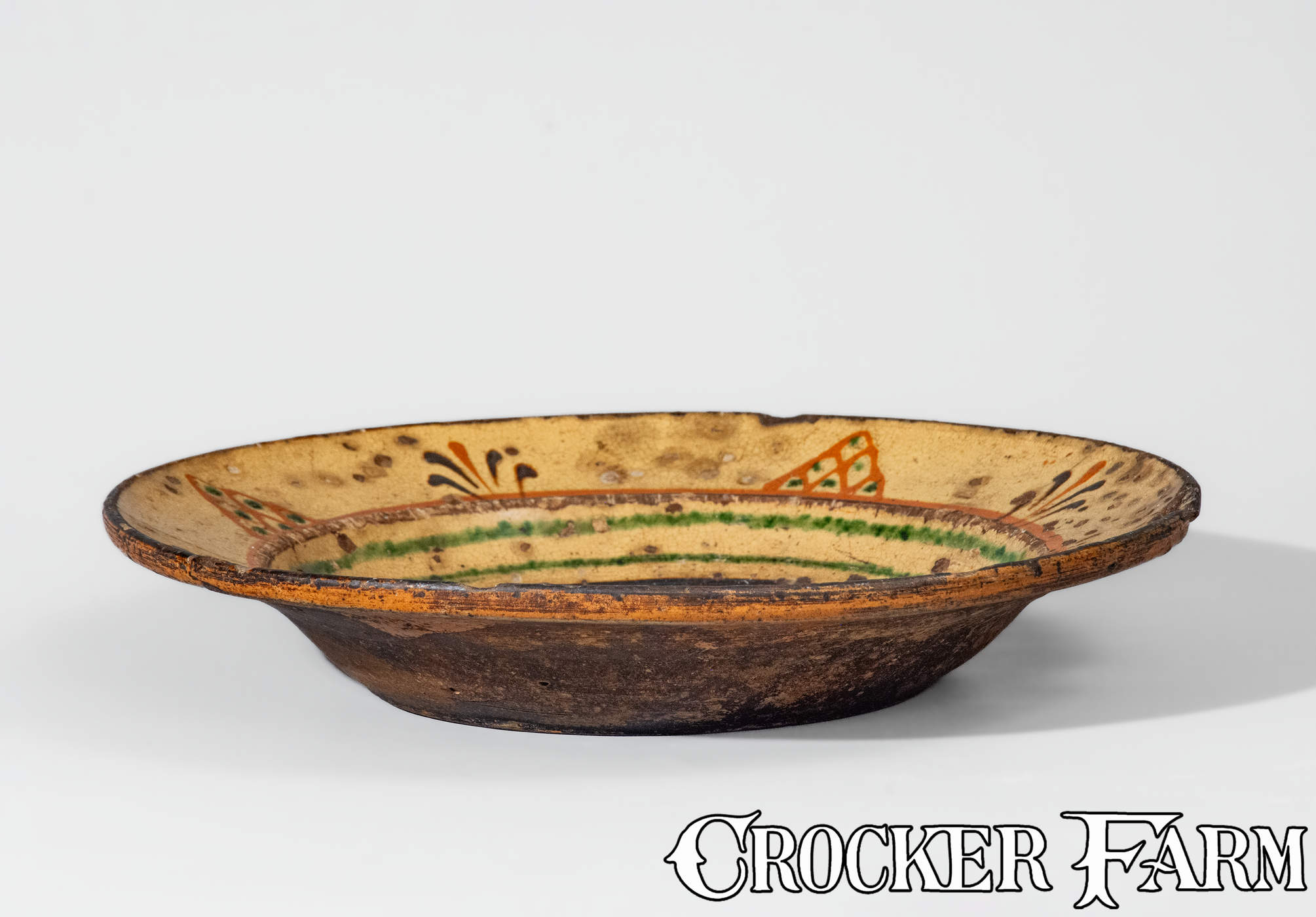 Rare Alamance County, NC Redware Dish, Loy or Albright Families, late 18th century
