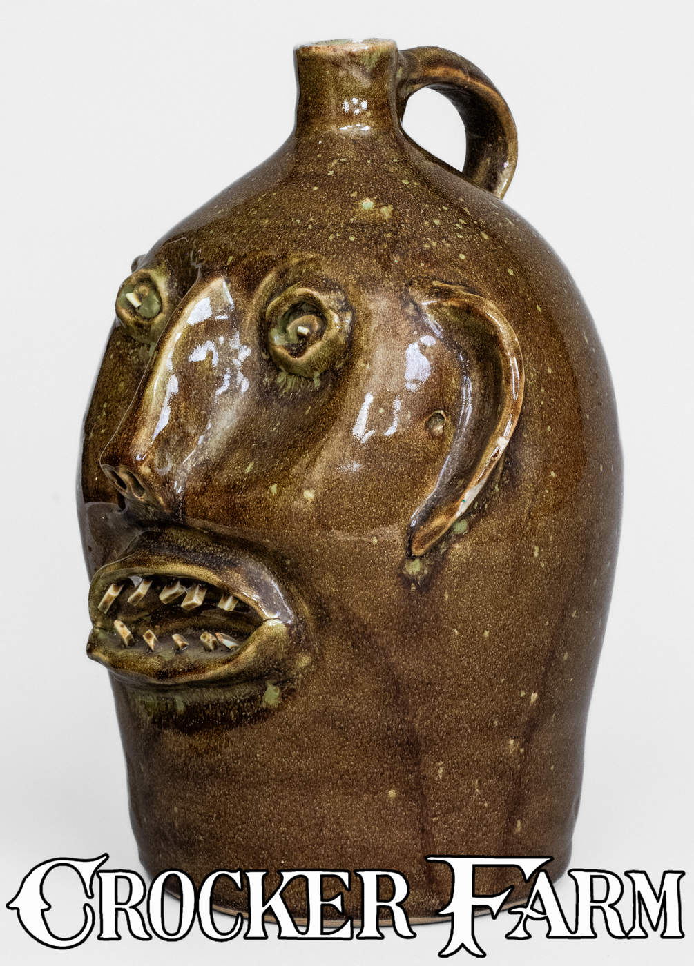 E.J. BROWN / Evan's / HANDMADE / ARDEN, N.C. Stoneware Face Jug