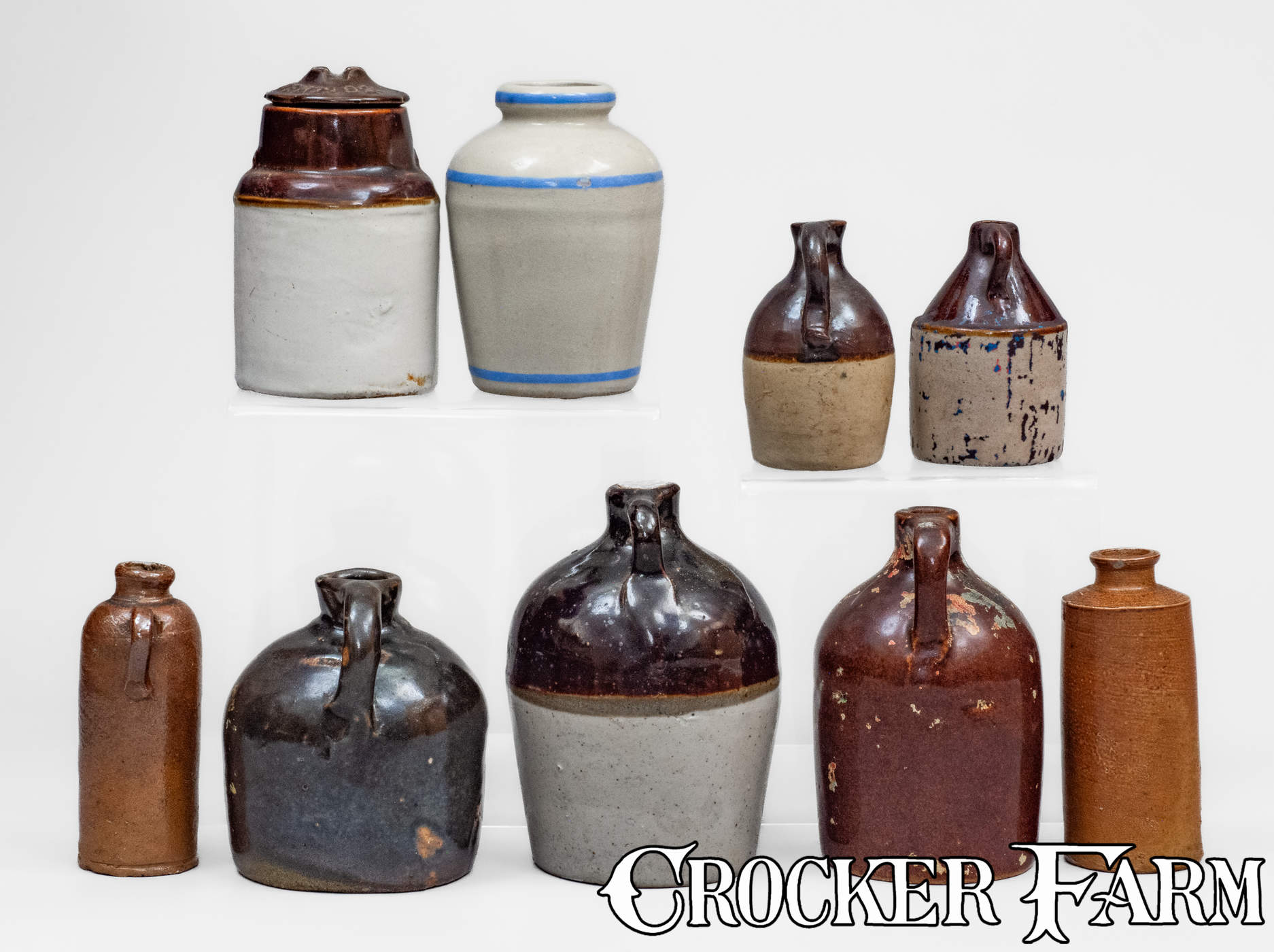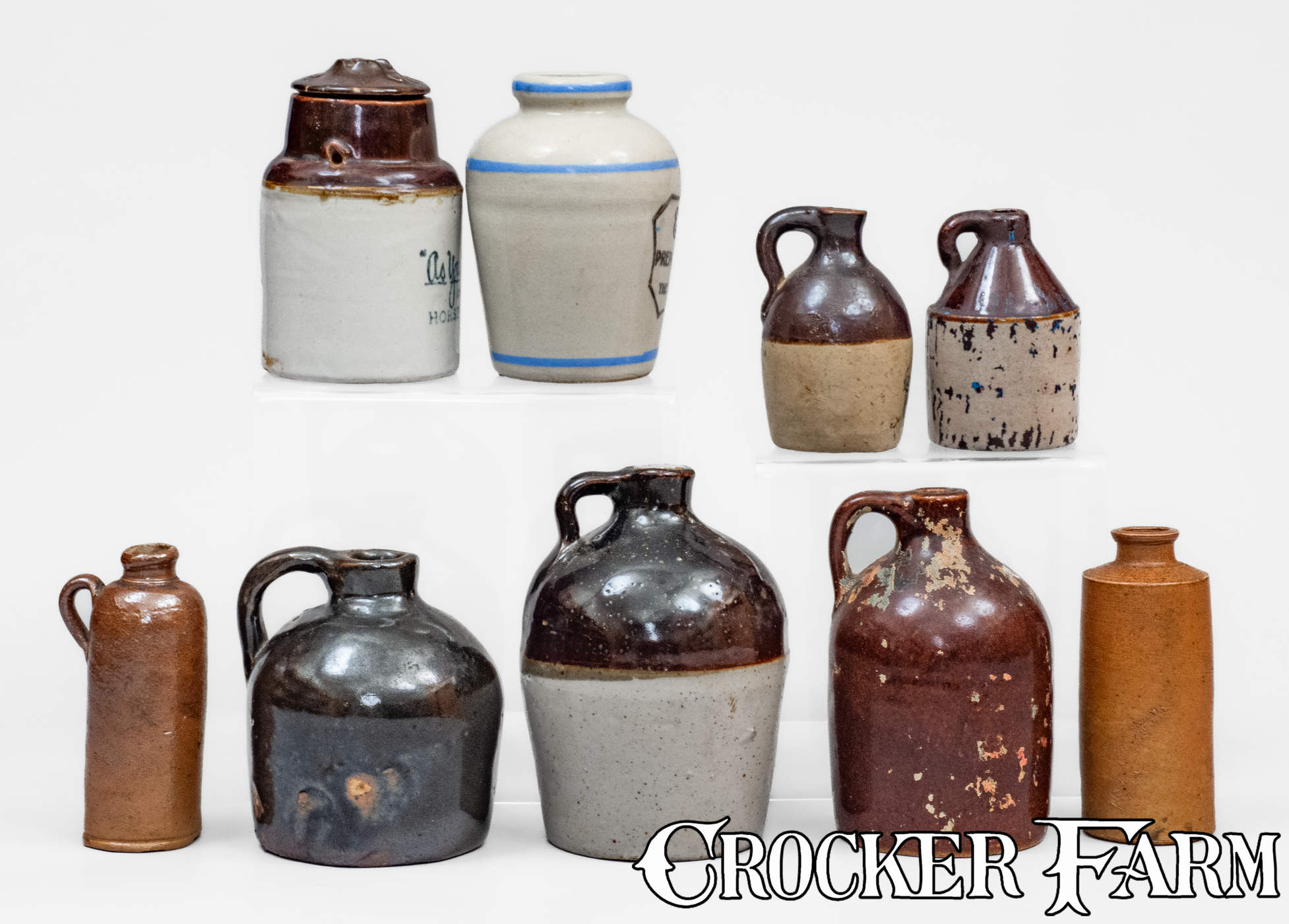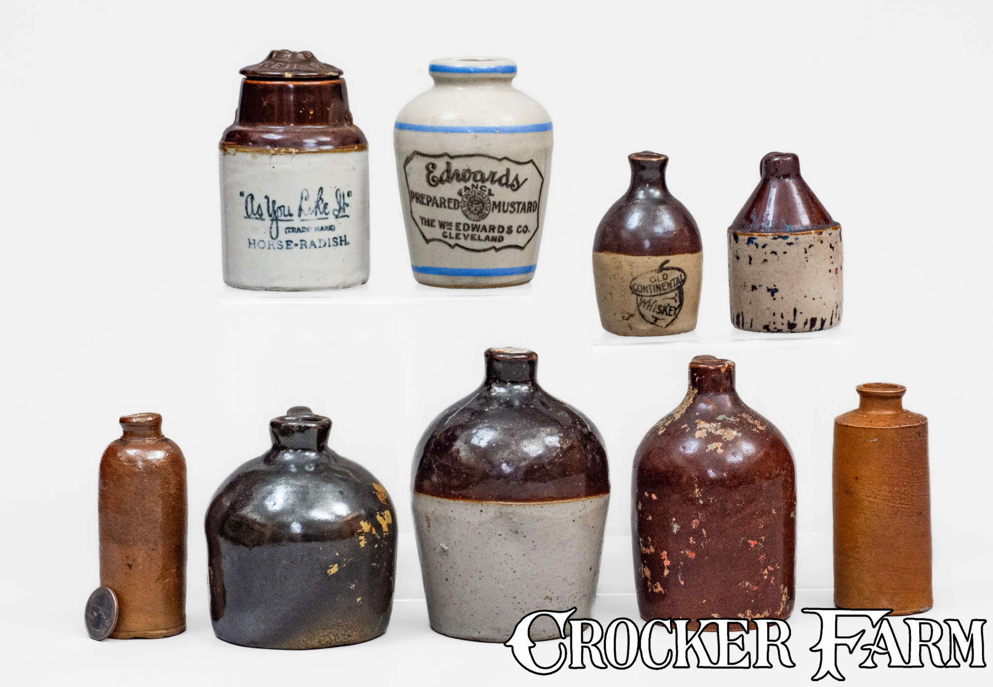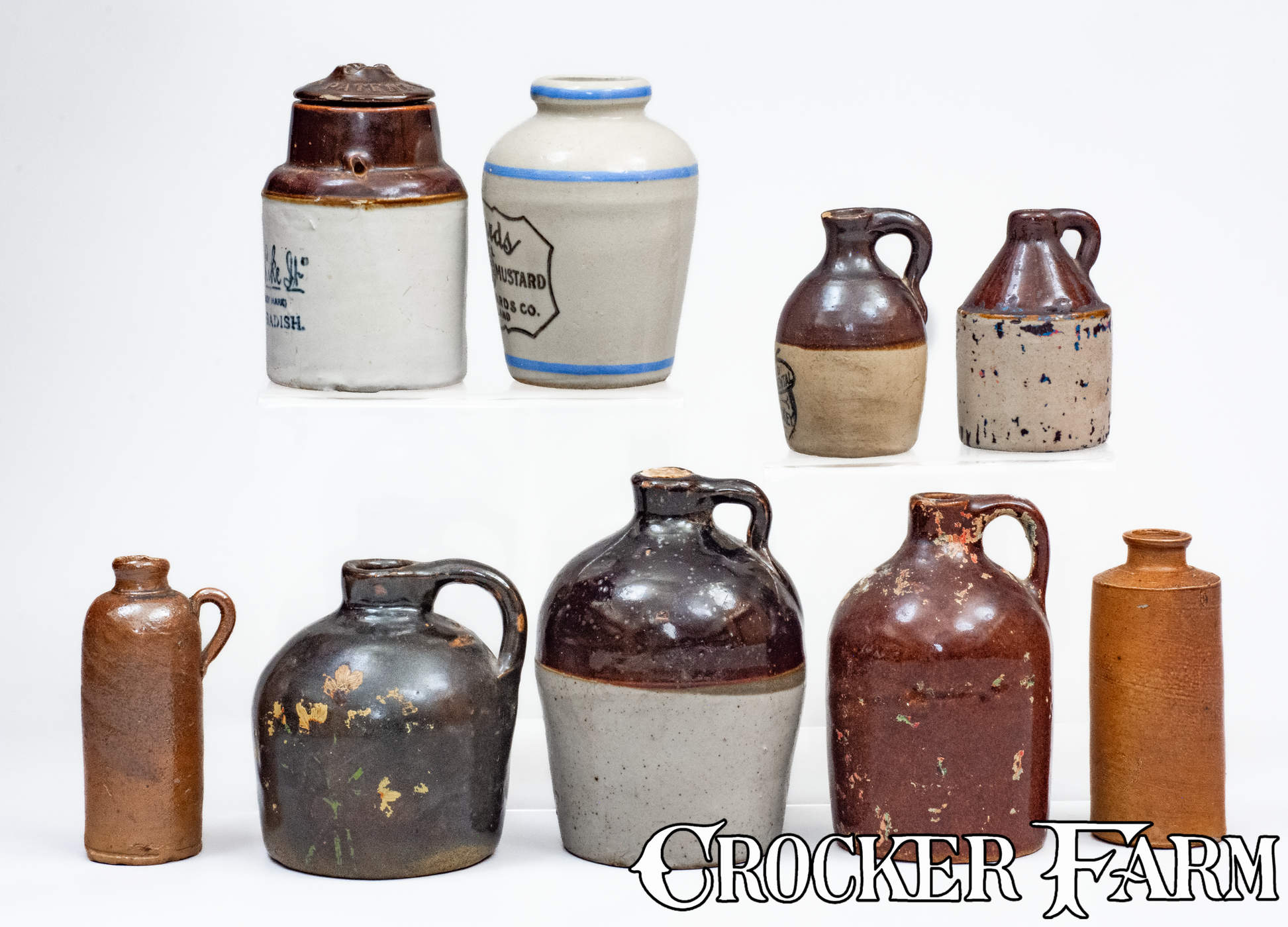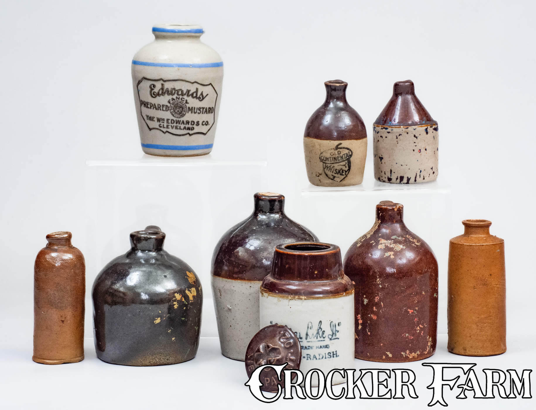Lot of Nine: Miniature Stoneware incl. Horseradish and Mustard Jars