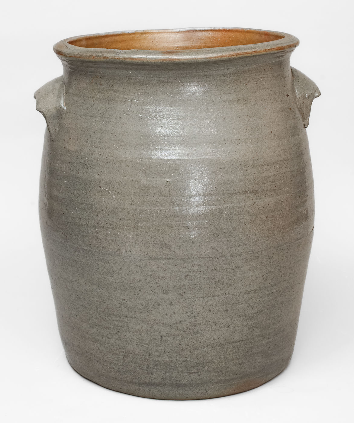 ×Extremely Rare "AJ Lafever," White County, Tennessee Large-Sized Salt-Glazed Stoneware Jar