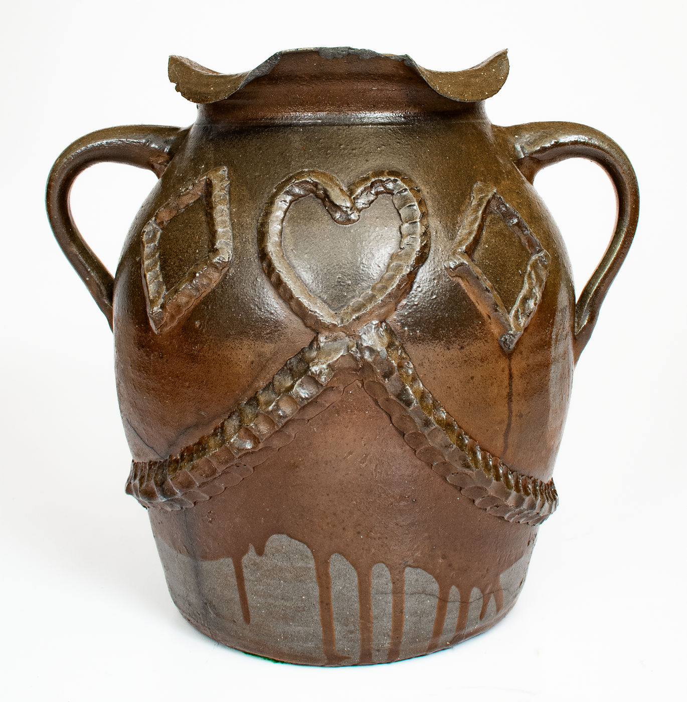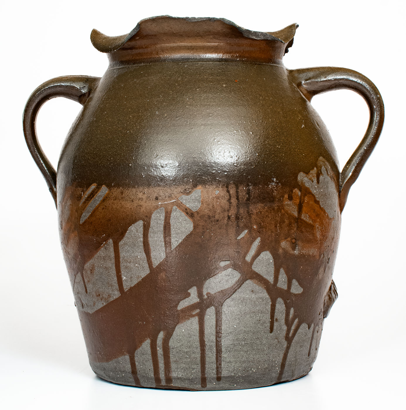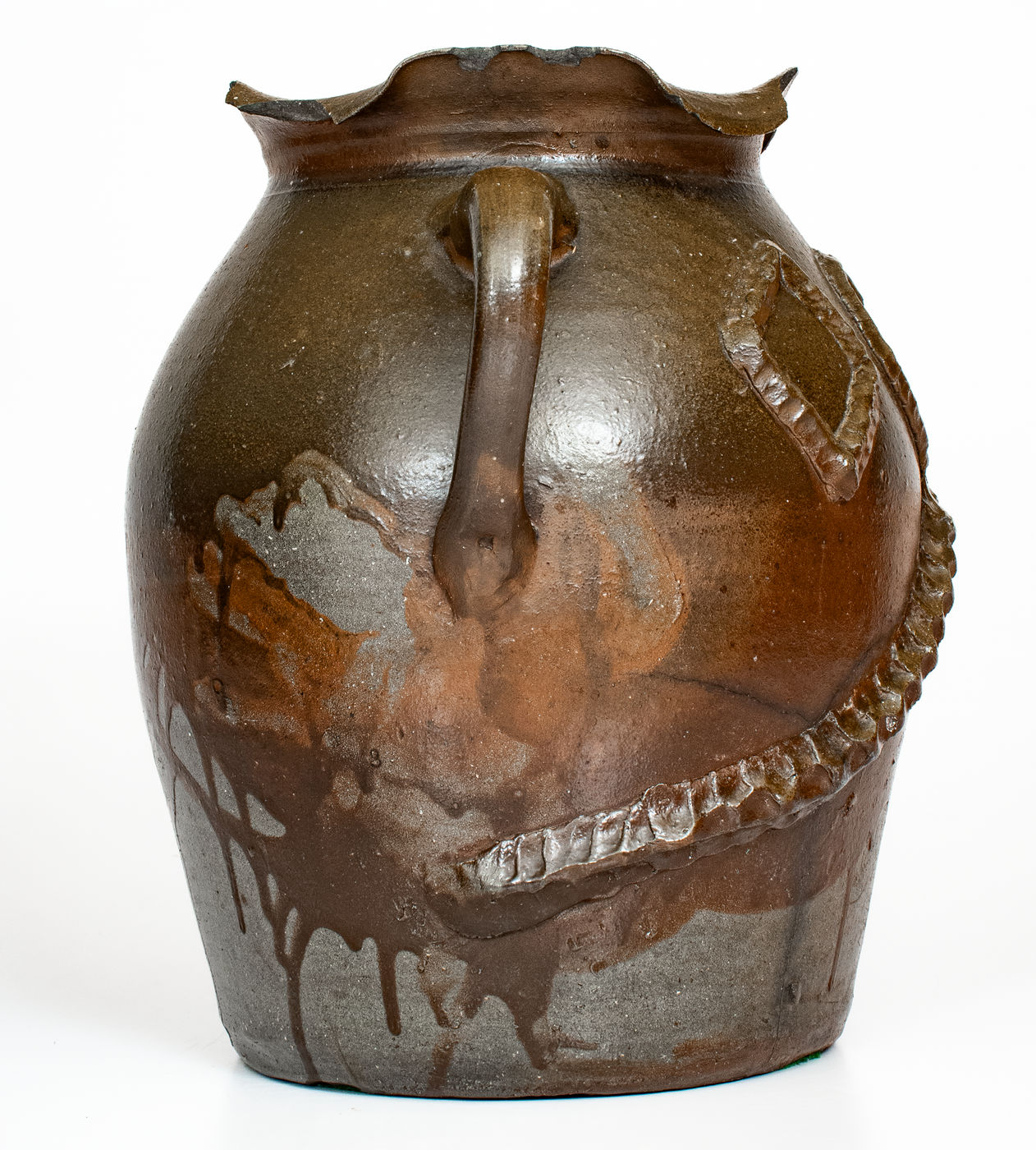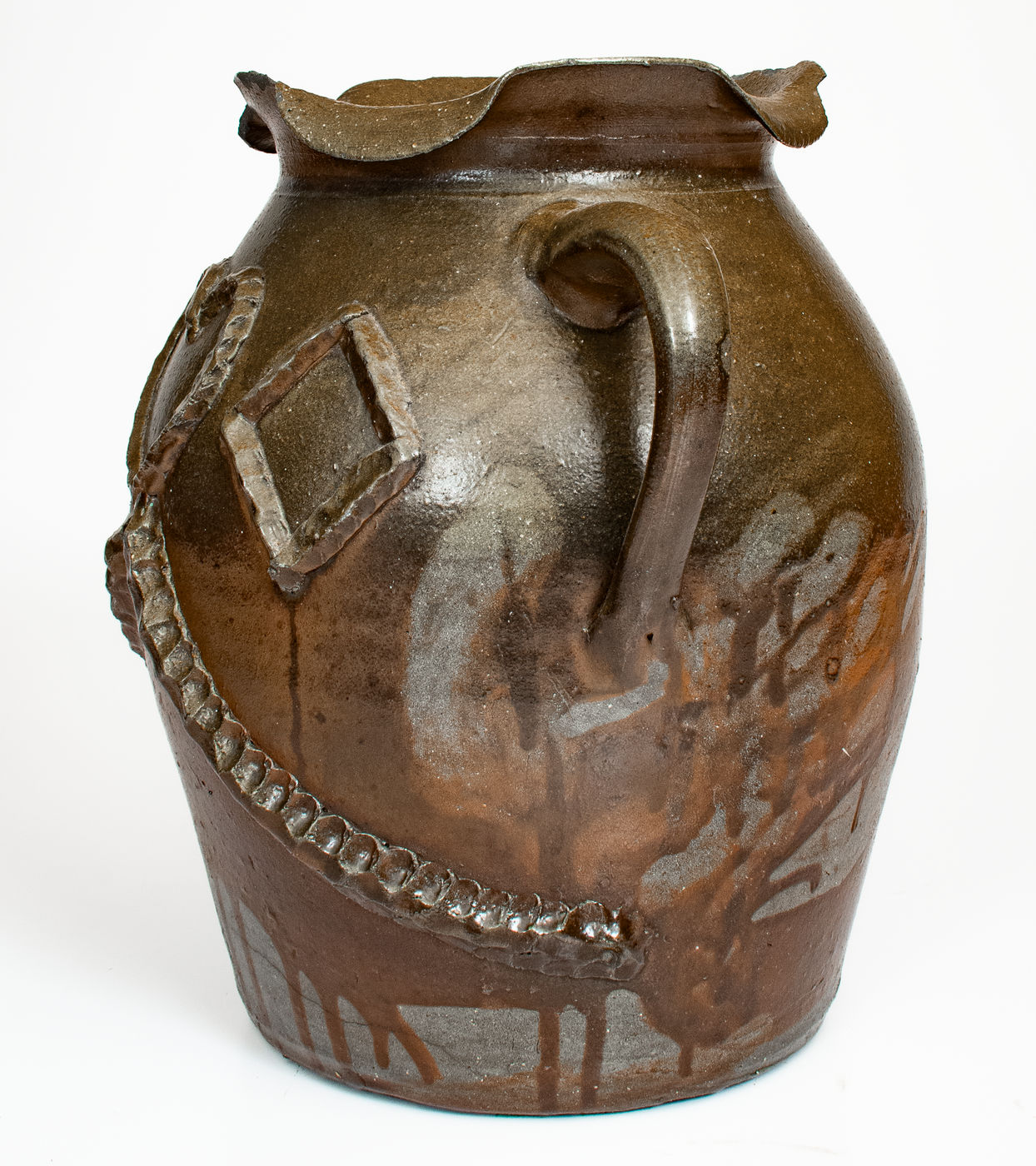×Exceptional attrib. Hedgecough Pottery, Putnam County, TN Stoneware Jar w/ Applied Decoration