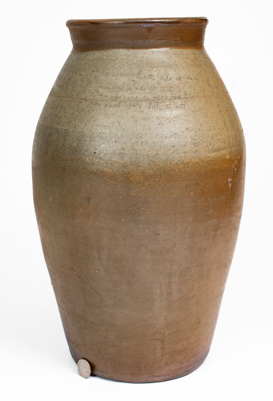 ×Very Rare Middle Tennessee Salt-Glazed Stoneware Churn w/ Incised Poem